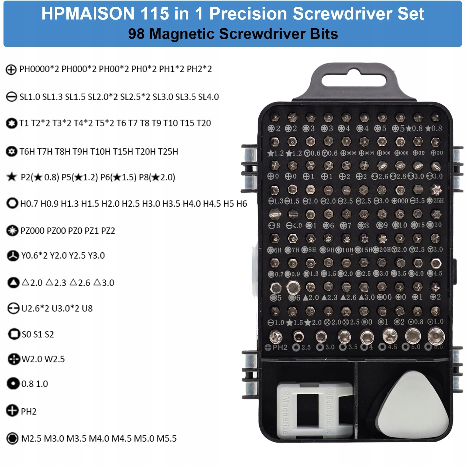 HPMAISON Zestaw Precyzyjnych Śrubokrętów 115w1 Magnetyczny Do Elektroniki