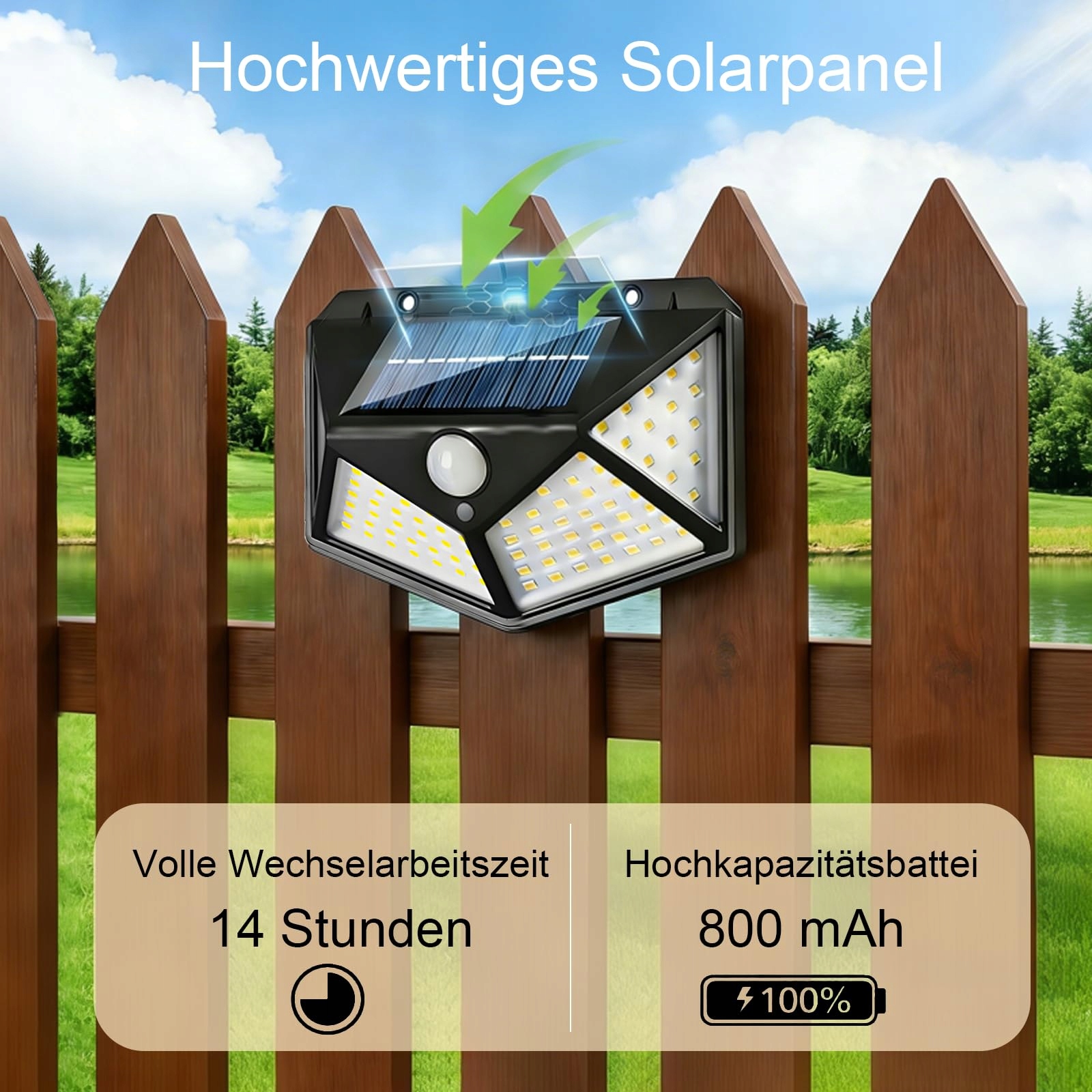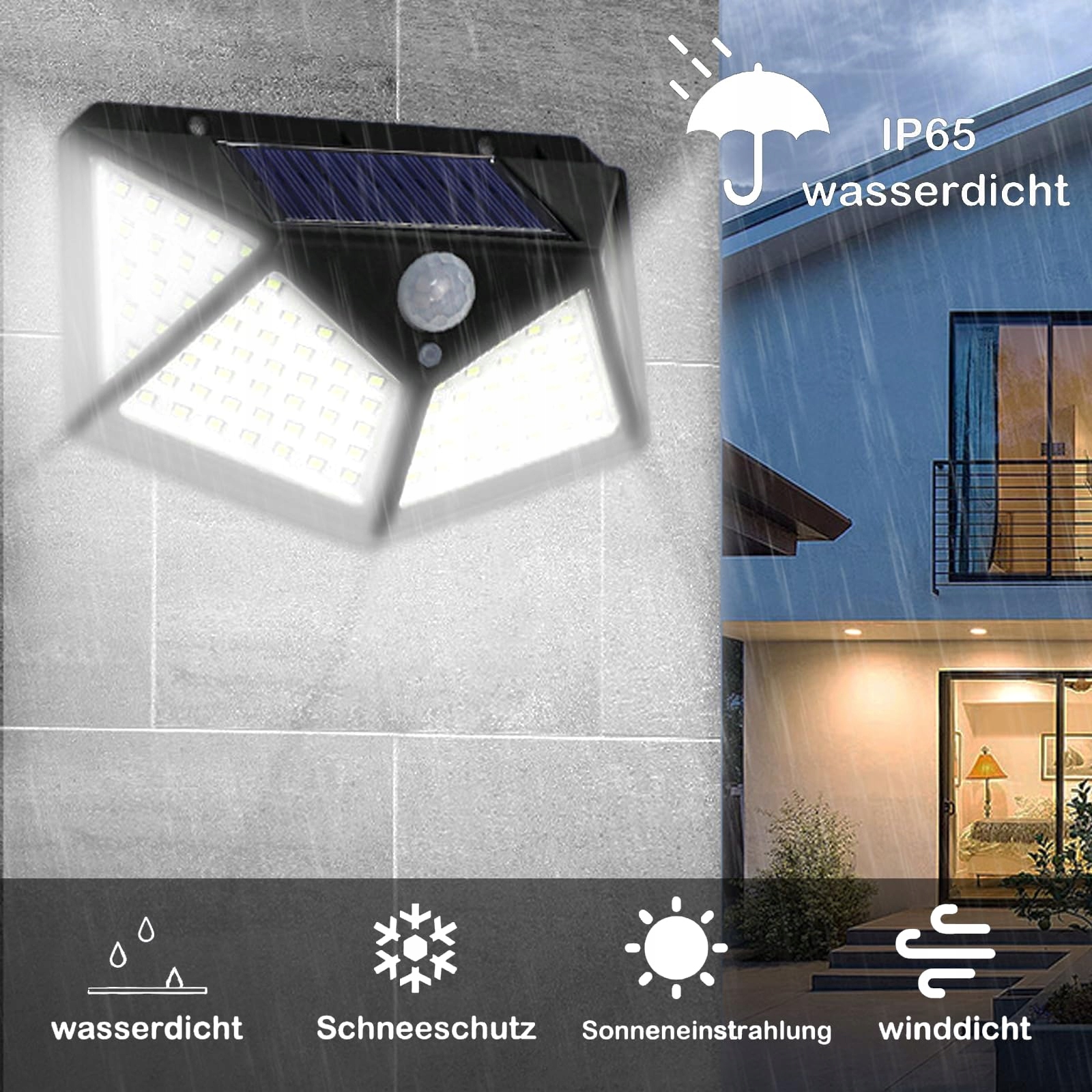 Hqynss lampy solarne na zewnątrz z czujnikiem ruchu, 3 tryby lamp solarnych na zewnątrz 100 LED 700LM 270° lampa ścienna solarna, wodoodporna IP65 - lampa solarna na zewnątrz do ogrodu, ogrodzenia, garażu, podwórka (4 sztuki)