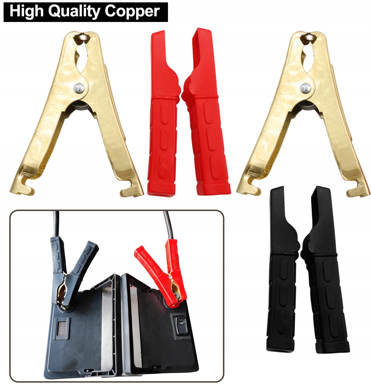 HuaLiSiJi Krokodylki 12V 24V Samochodowe Krokodylki z czystej miedzi do akumulatora samochodowego, do samochodowego kabla ładującego (500A 4 szt.)