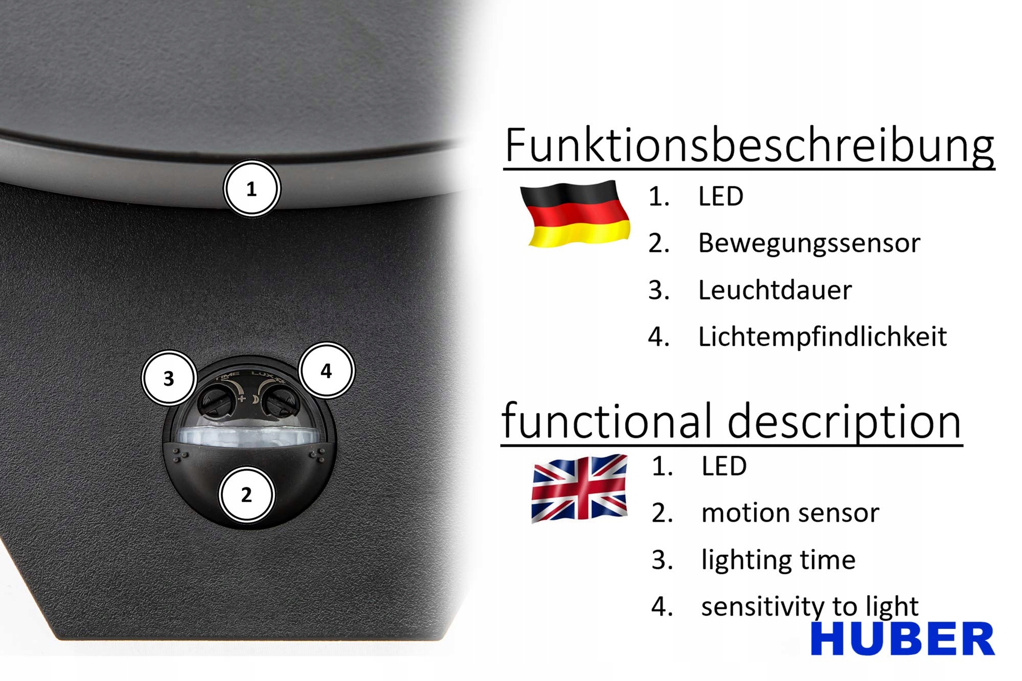HUBER LED Kinkiet Z Czujnikiem Ruchu 10W 1050lm IP54 | Premium Supply
