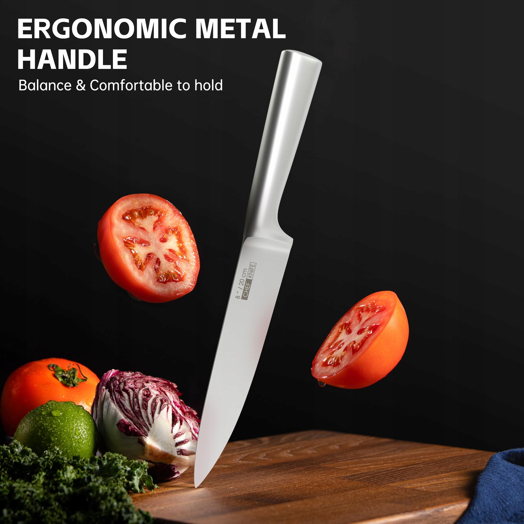 【ANTYPOŚLIZGOWY UCHWYT】 Uchwyt idealnie leży w dłoni, aby maksymalizować kontrolę i zapewnić komfort podczas krojenia, cięcia, siekania i szatkowania. Matowy uchwyt noża zapobiega ślizganiu się ręki podczas używania noża kuchennego, co chroni Twoje bezpieczeństwo podczas gotowania. Jednoczęściowy nóż, uchwyt jest mocny i niełatwy do złamania. To również projekt jest unikalną innowacją.