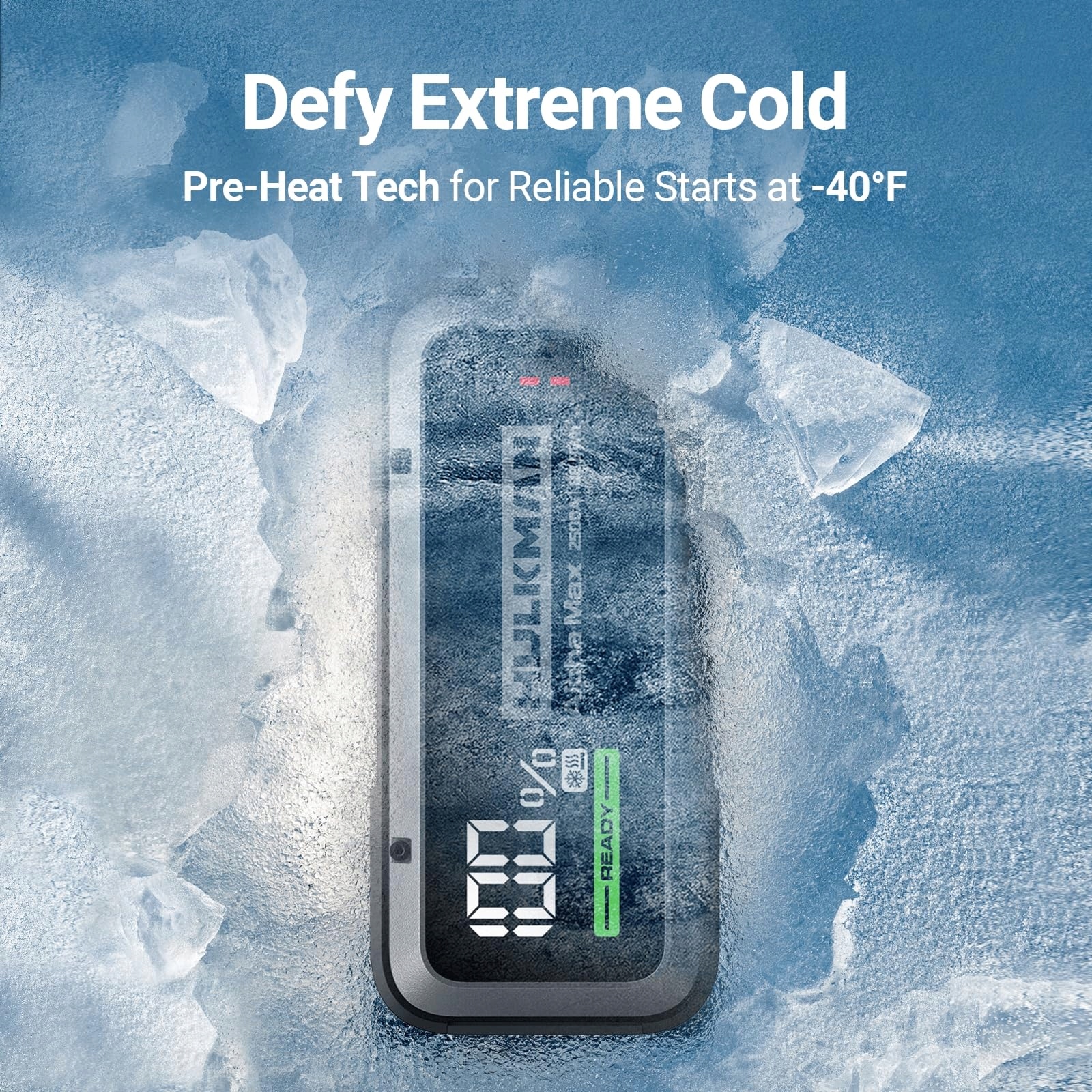 Technologia Pre-Heat dla ekstremalnego zimna: Delikatnie podgrzewa wewnętrzną baterię dla szybkich startów w mroźnych temperaturach. Zawsze gotowy do użycia zimą.