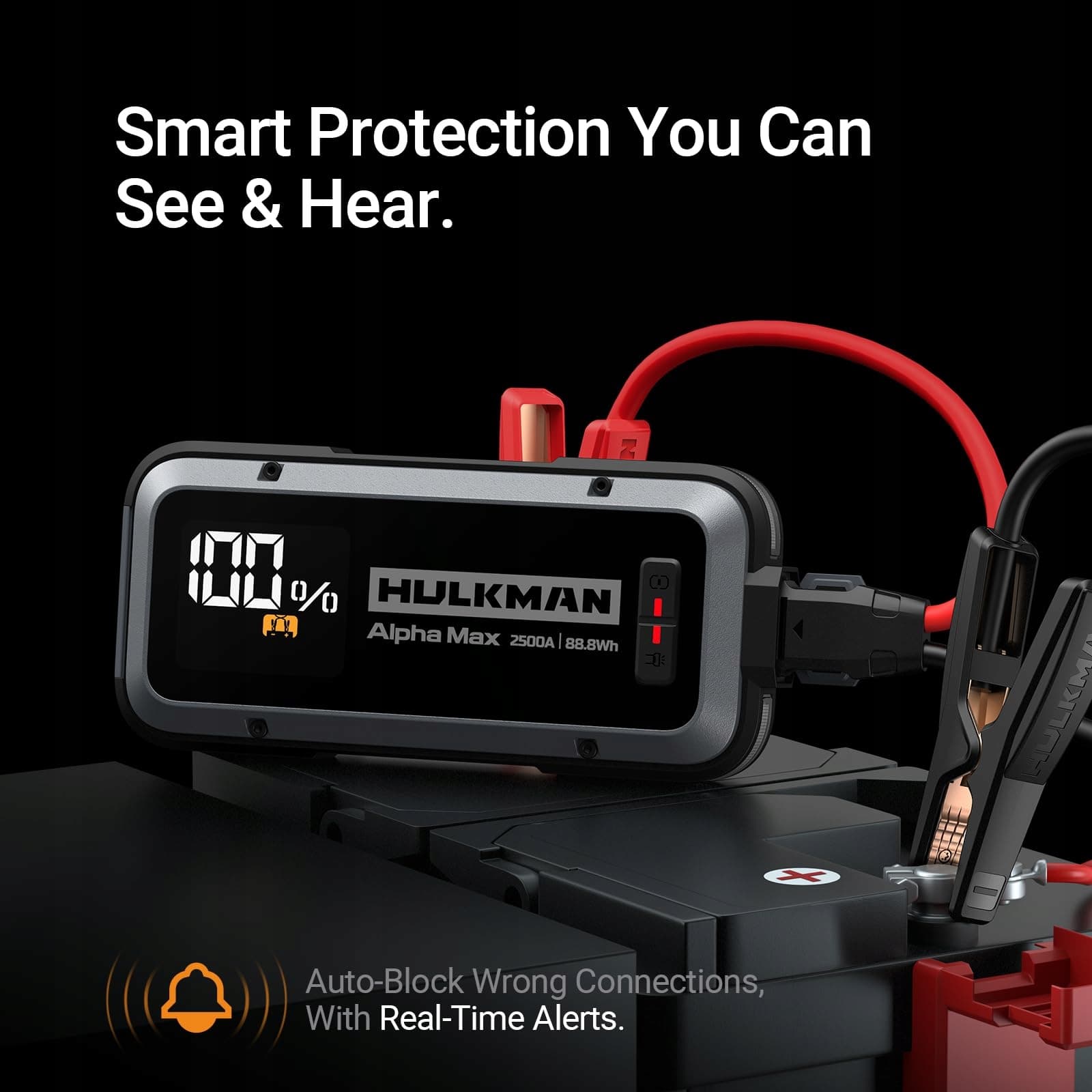 HULKMAN Alpha Max Space Gray 2500A 88.8Wh Rozrusznik do samochodu, 12V Przenośne urządzenie rozruchowe z technologią startową -40°F, 3.3'' wyświetlacz LED, Dla silników benzynowych do 9.0L i silników Diesla do 6.5L
