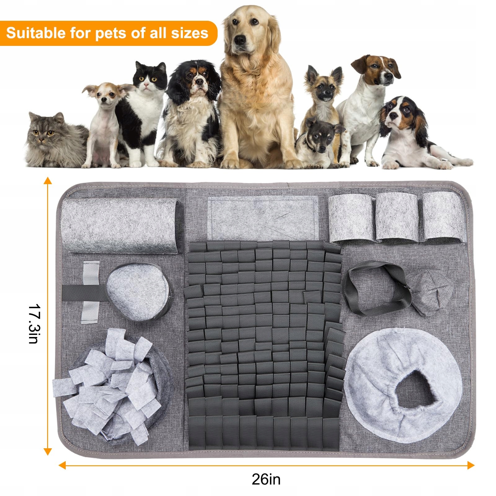 Zastosowanie: W złej pogodzie trudno jest wyjść na spacer z psem. Możesz użyć tego dywanika węchowego, aby zająć swojego zwierzaka. Każde zwierzę z instynktem poszukiwania jedzenia może skorzystać z tego dywanika węchowego dla psów.
