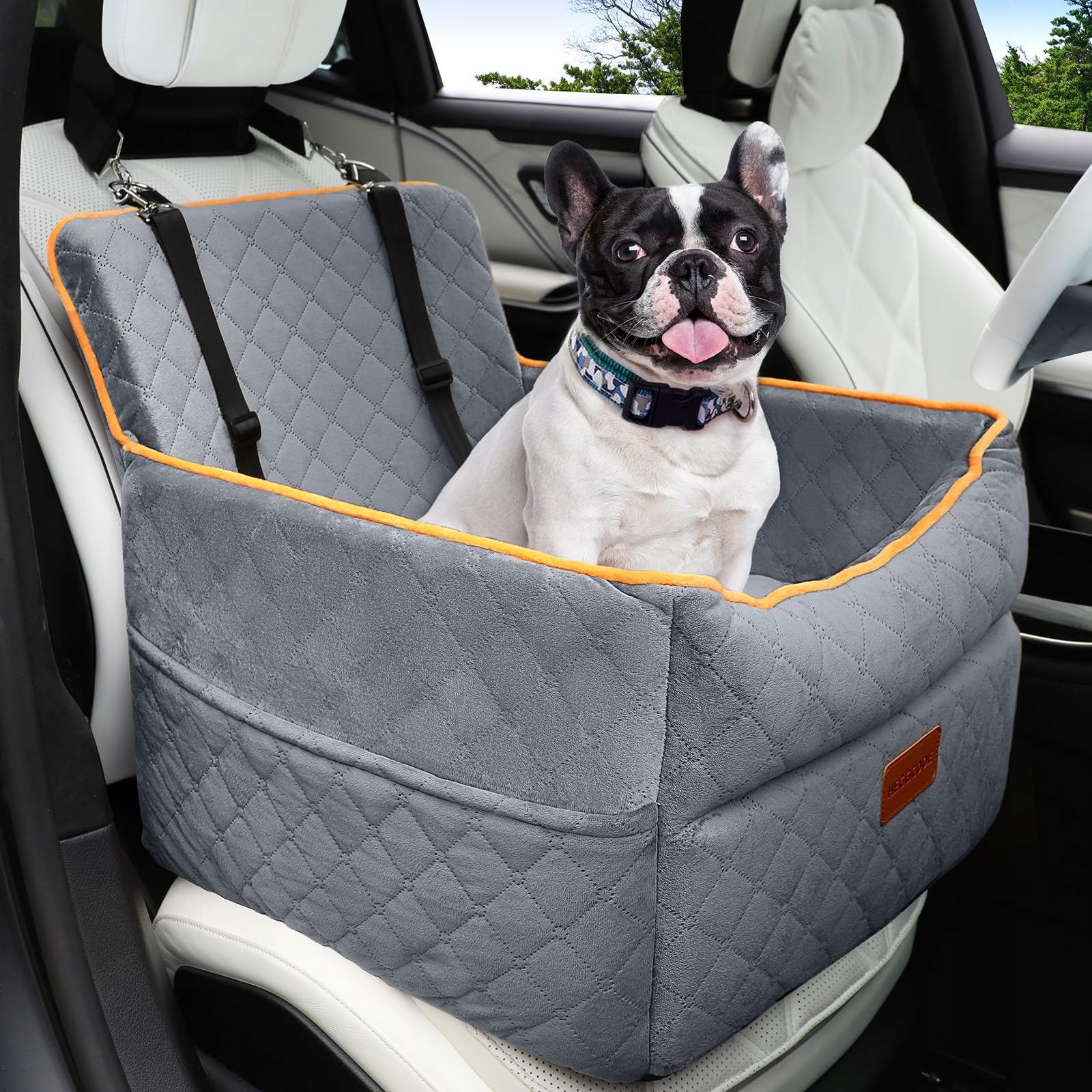 Komfort i bezpieczeństwo: Powierzchnia siedzenia samochodowego dla psa wykonana jest z krótkiego pluszowego materiału, jest super miękka i wygodna, a spód wypełniony jest pianką o wysokiej gęstości w kształcie jajka, aby zapewnić doskonały komfort i wsparcie oraz skutecznie zmniejszyć wpływ wstrząsów drogowych. Wraz z antypoślizgowym spodem i pasami na zagłówki, siedzenie samochodowe dla psa staje się bardziej stabilne, aby zapewnić bezpieczeństwo Twojego psa.