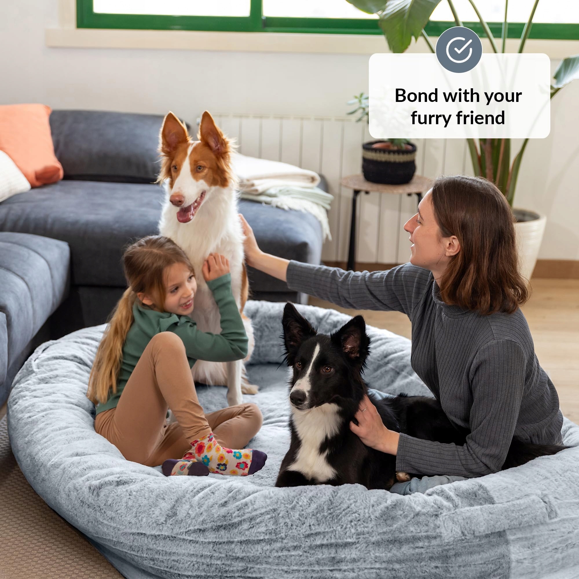 Łóżko dla psa dla ludzi i psów | Ogromne łóżko dla psa dla ludzi | Ciepłe i wygodne łóżko typu beanbag | Łóżko dla psa dla ludzi i zwierząt domowych w rozmiarze ludzkim dla dorosłych | Zdejmowany pokrowiec | Niebieskie