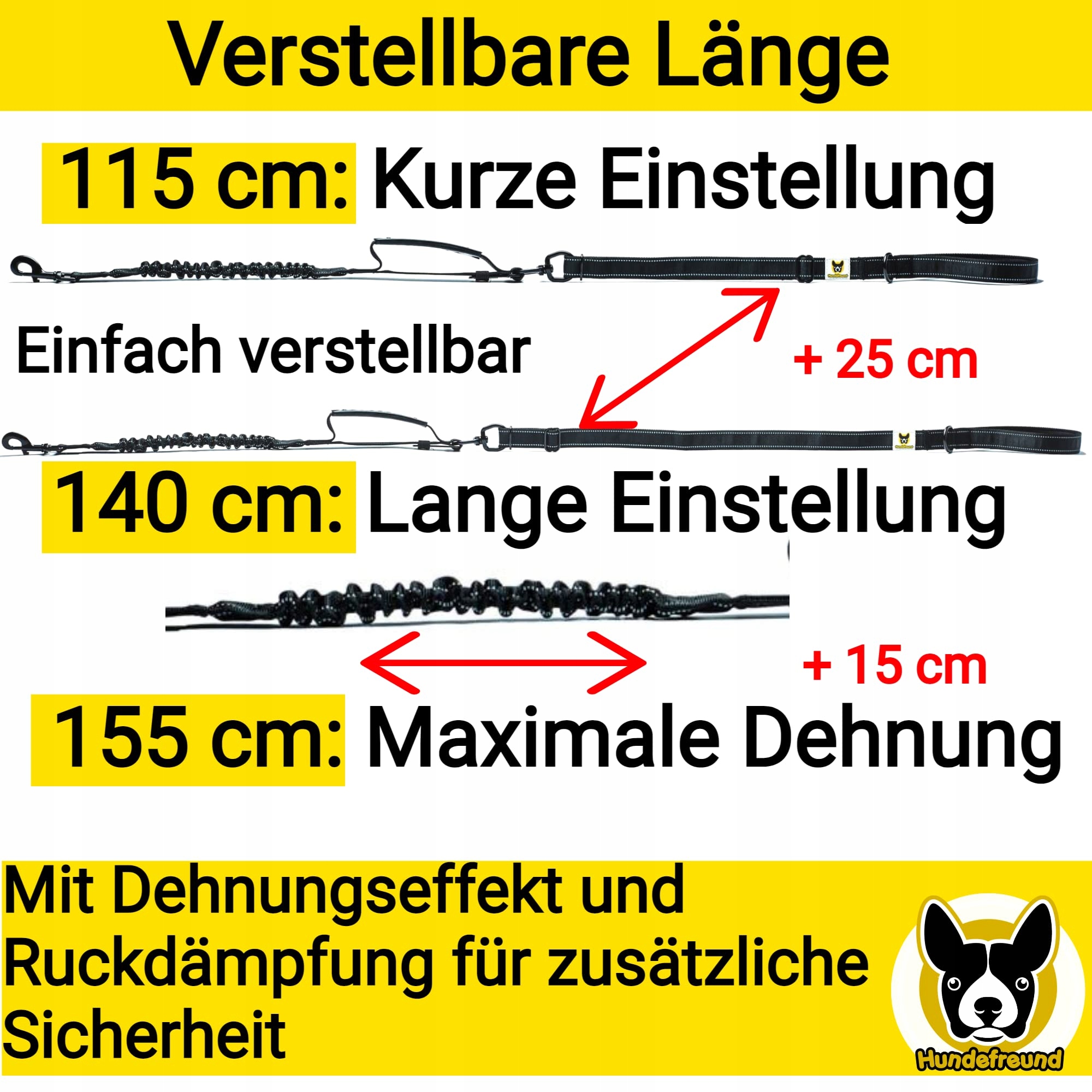 HUNDEFREUND Smycz Samochodowa Dla Psów Regulowana Odbijająca Czarna Z Amortyzatorem I Poduszką Na Rączkę Pasuje Do Wszystkich Ras Psów I Samochodów
