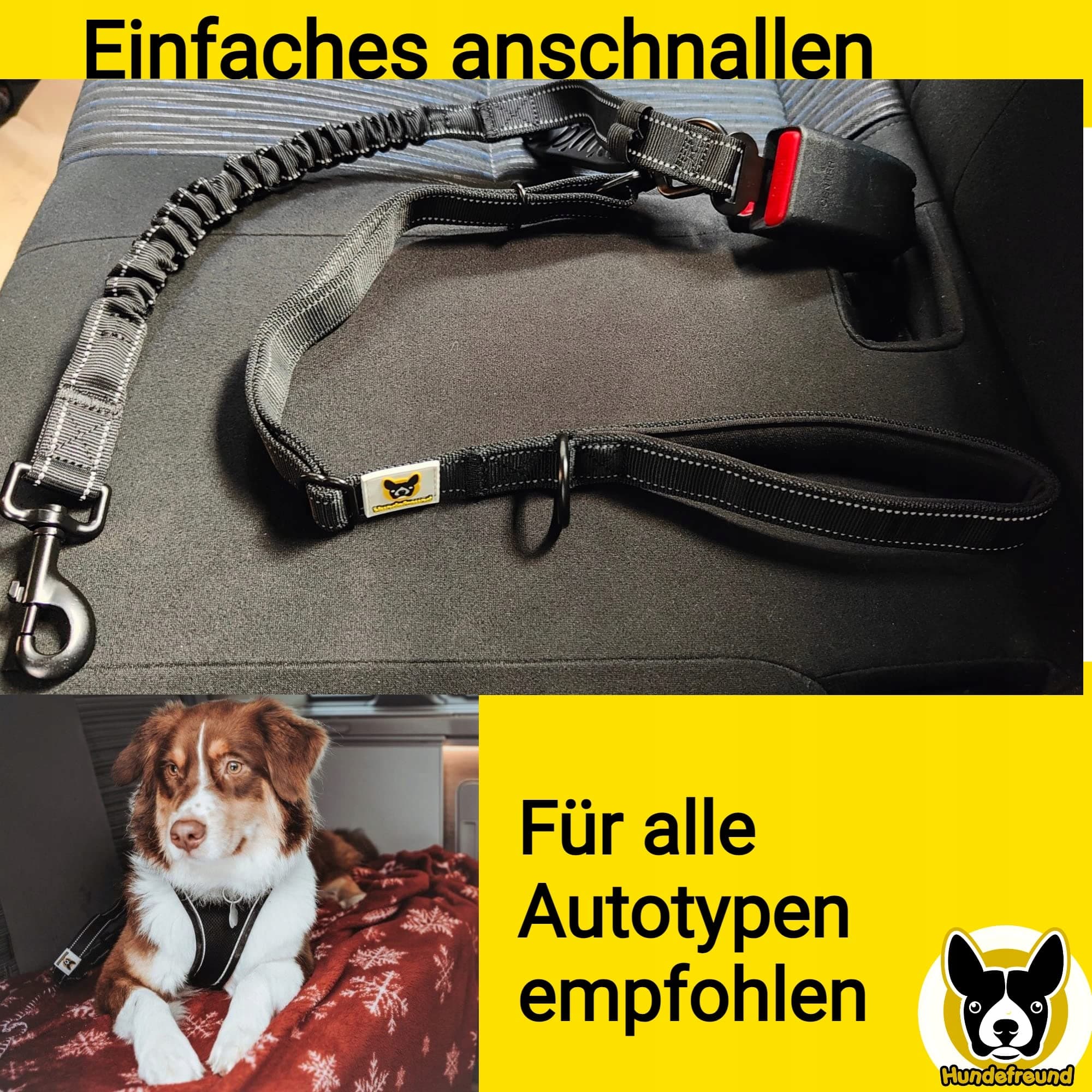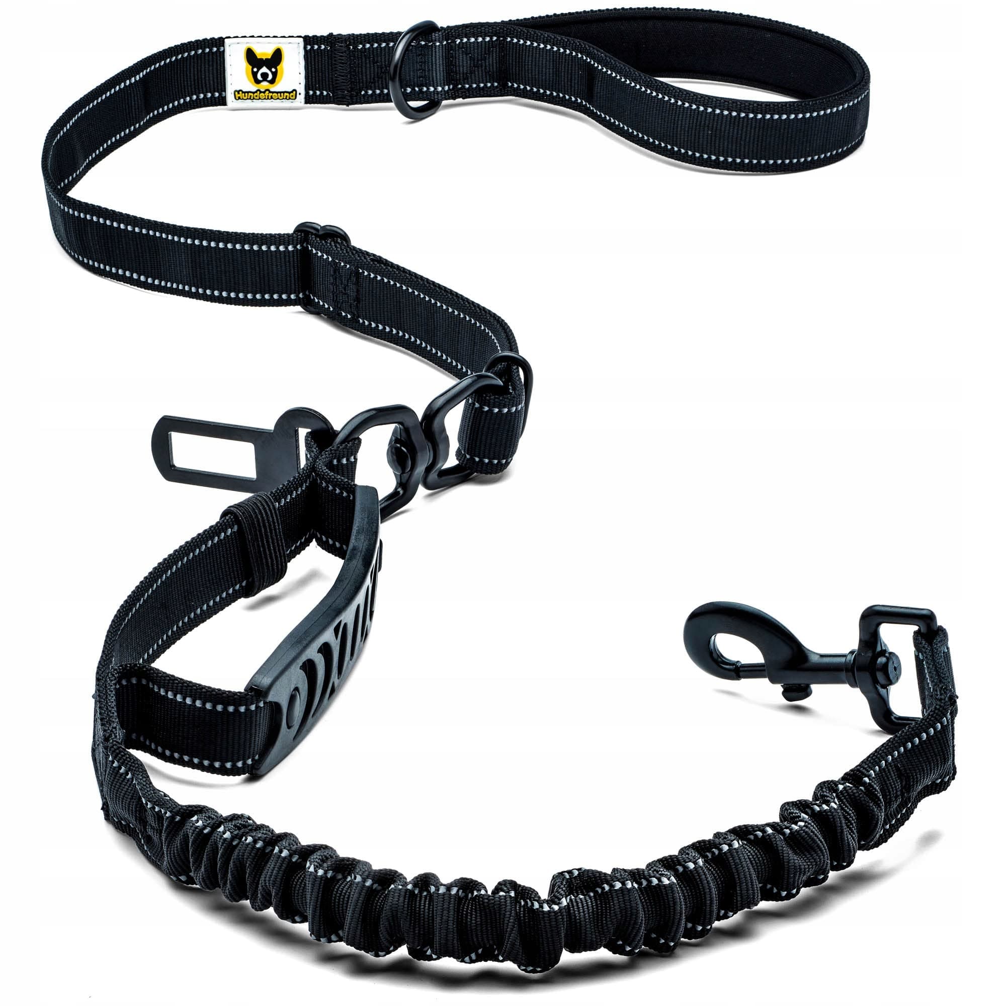 HUNDEFREUND Smycz Samochodowa Dla Psów Regulowana Odbijająca Czarna