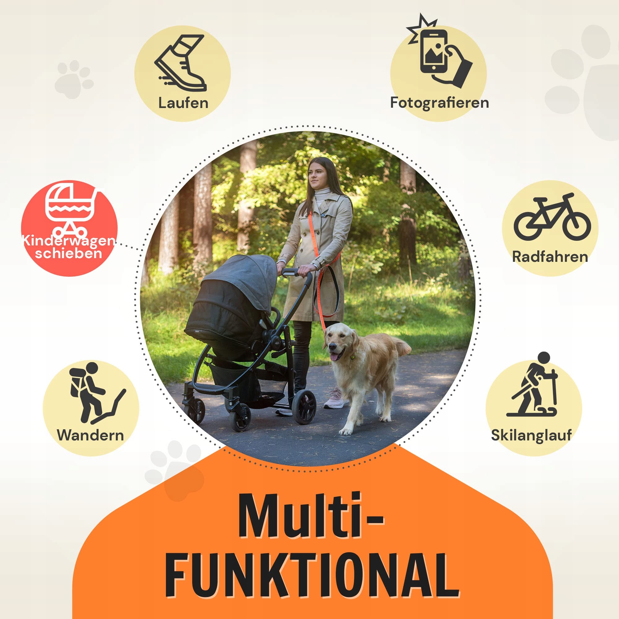 ZAWSZE POD RĘKĄ POŻĄDANA SMYCZ DLA PSA: Łatwa do regulacji długość na wszystkie spacery z psami od 15 kg. Dzięki podwójnemu karabińczykowi można używać dla 2 psów, idealna również jako smycz treningowa