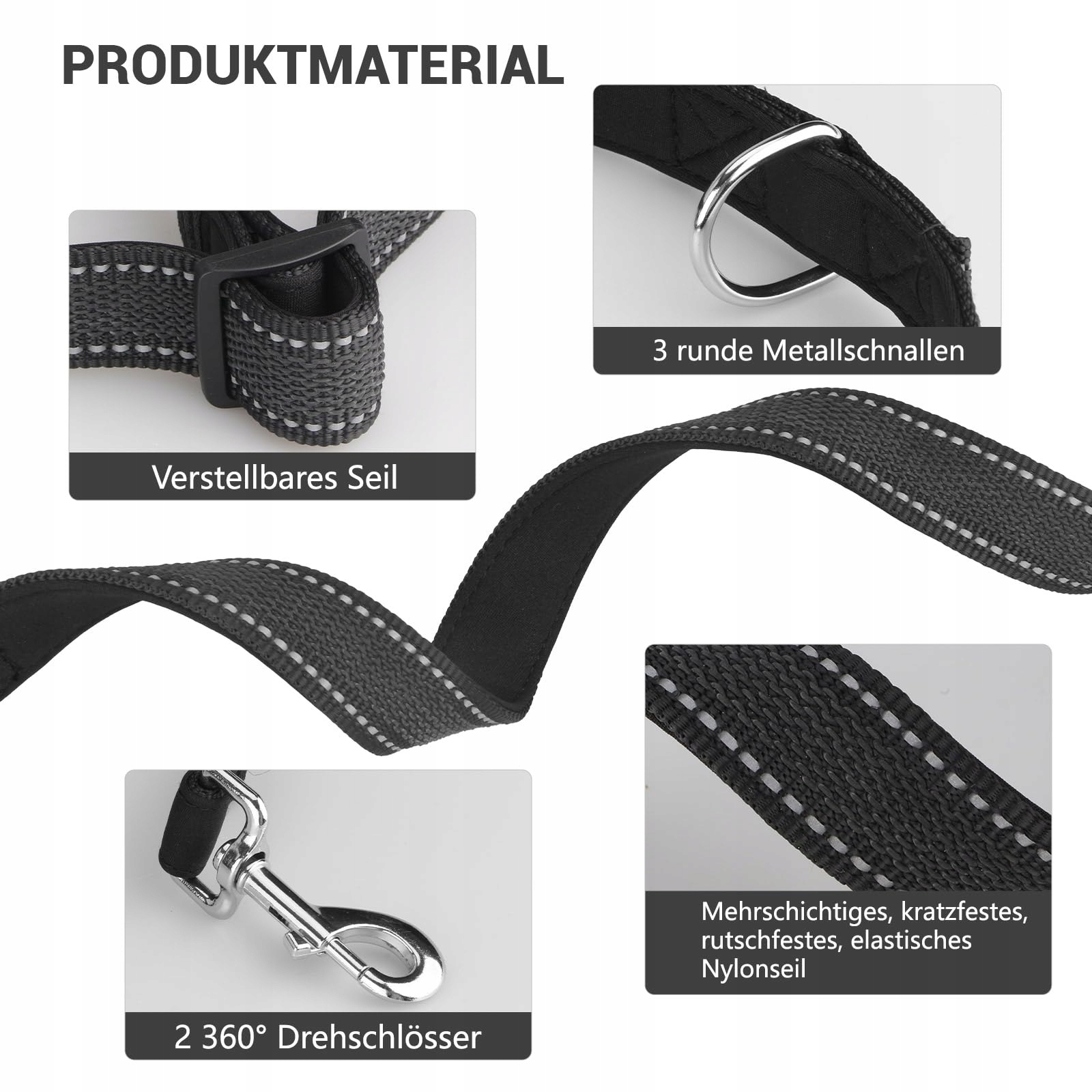 [Komfortowa i przenośna] Waga smyczy wynosi tylko 360g, co czyni ją bardzo lekką i łatwą do przenoszenia. Smycz jest bardzo mocna i wygodna w użyciu, wyposażona w odblaskowe paski, które mogą bezpieczniej odbijać światło podczas spacerów nocą. Nawet podczas spacerów w deszczowe i śnieżne dni smycz nie wchłania wody i szybko schnie. Produkt można prać ręcznie lub w pralce.