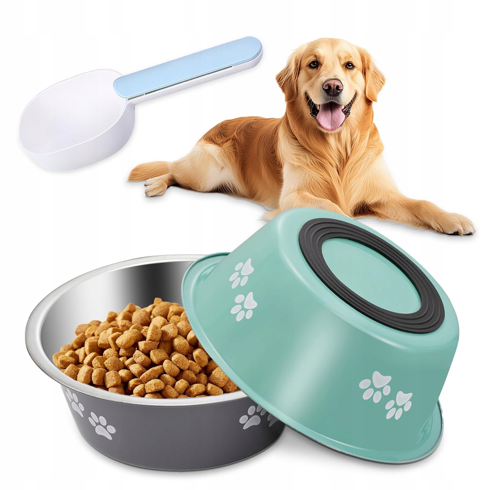 Miska dla psa ze stali nierdzewnej 2 sztuki, 1560 ml metalowa antypoślizgowa miska dla psa z silikonowym dnem, miska na wodę, miska na karmę z 1 łopatką do karmy dla dużych i średnich psów