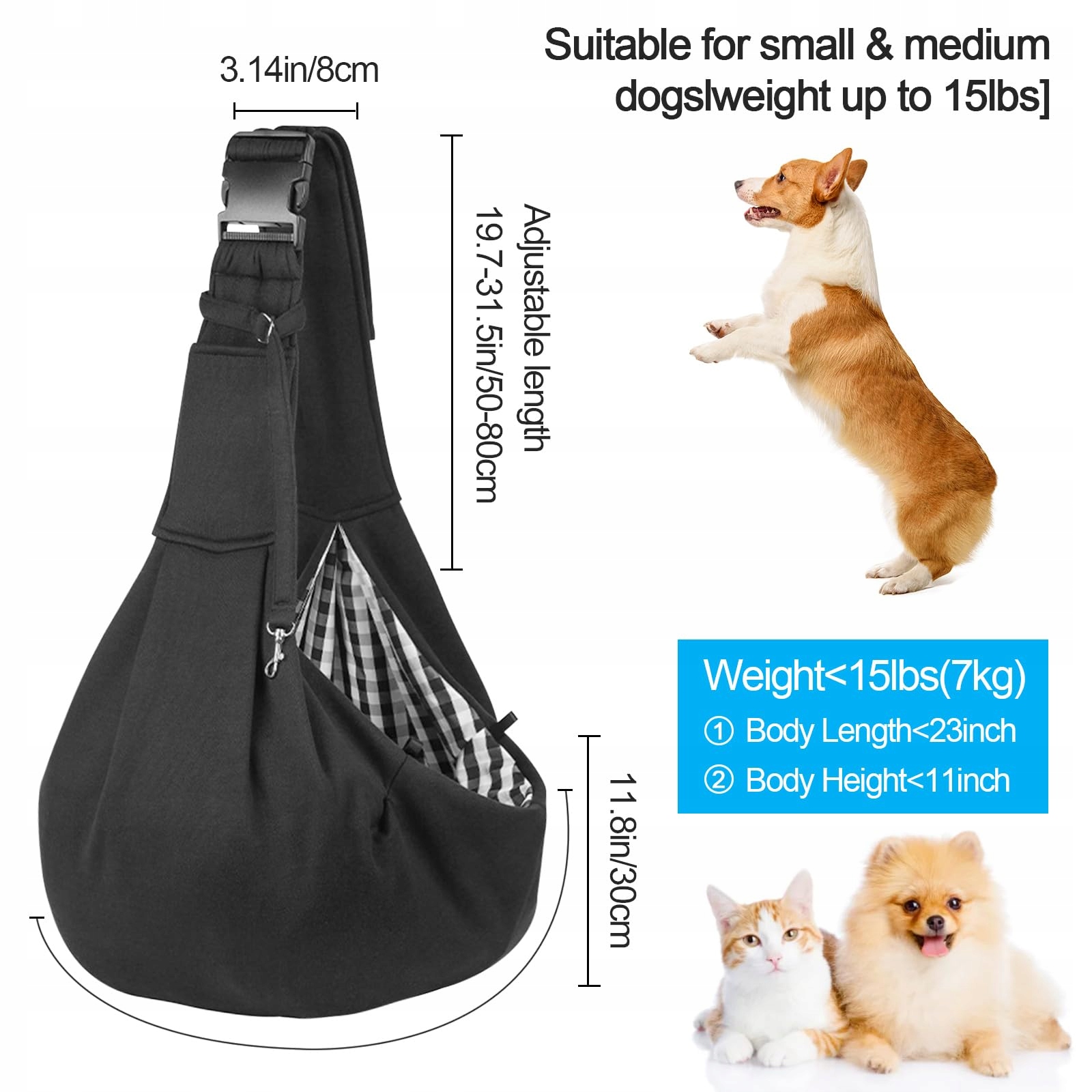 Torba do noszenia psa, chusta dla psa regulowana, nośność do 10 kg – wygodna, regulowana, używana do aktywności na świeżym powietrzu z psami i kotami, weekendowych wycieczek i spacerów (czarna)