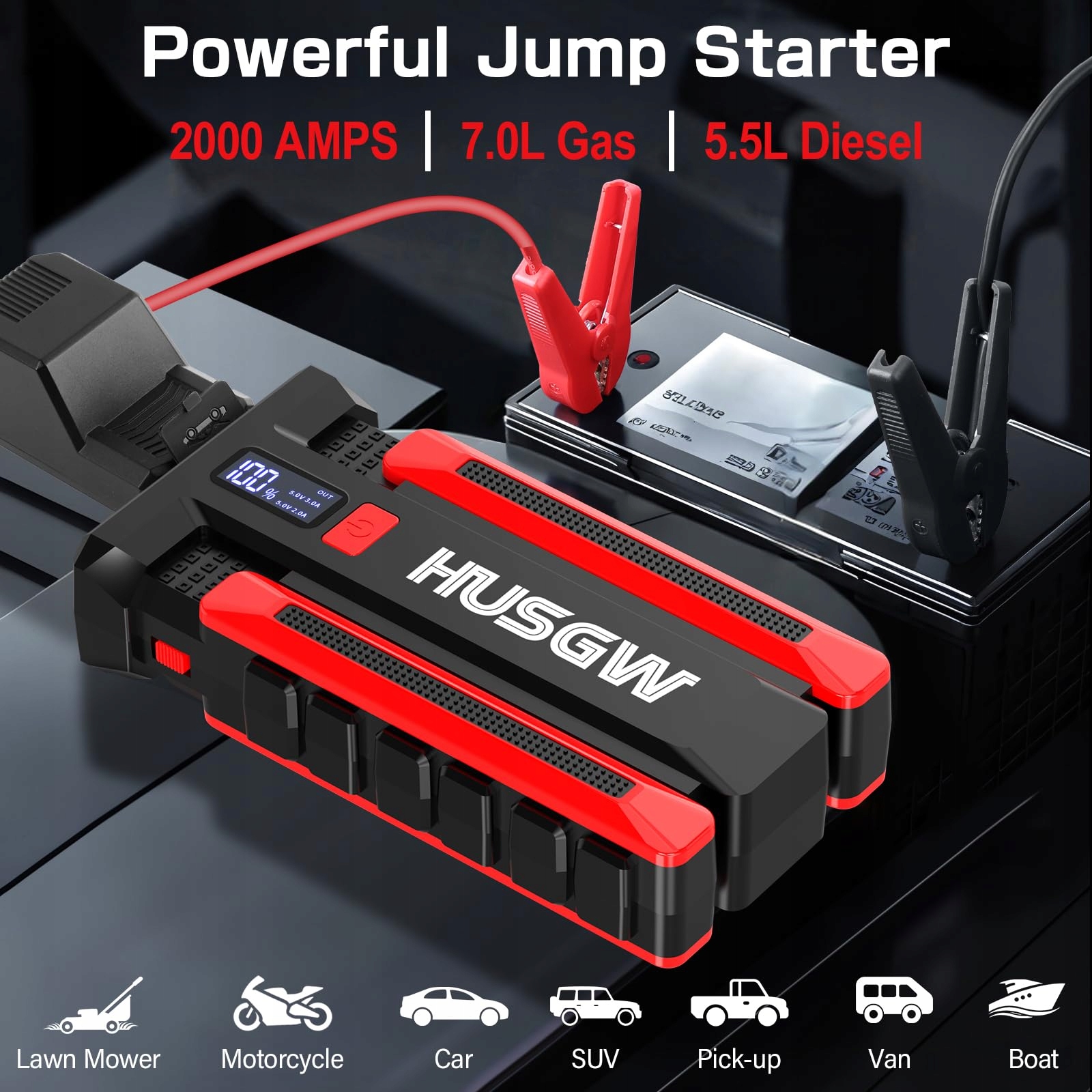 HUSGW Powerbank 2000A Rozruch Samochodu 12V LED Latarka Motocykl SUV