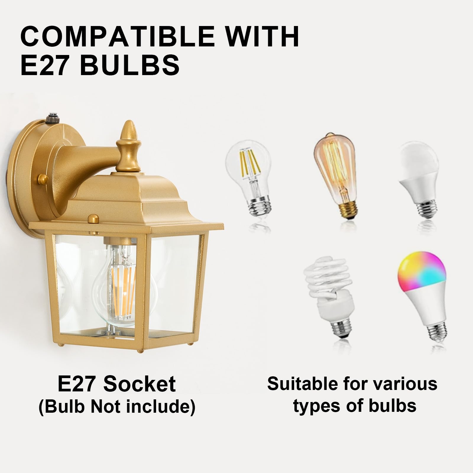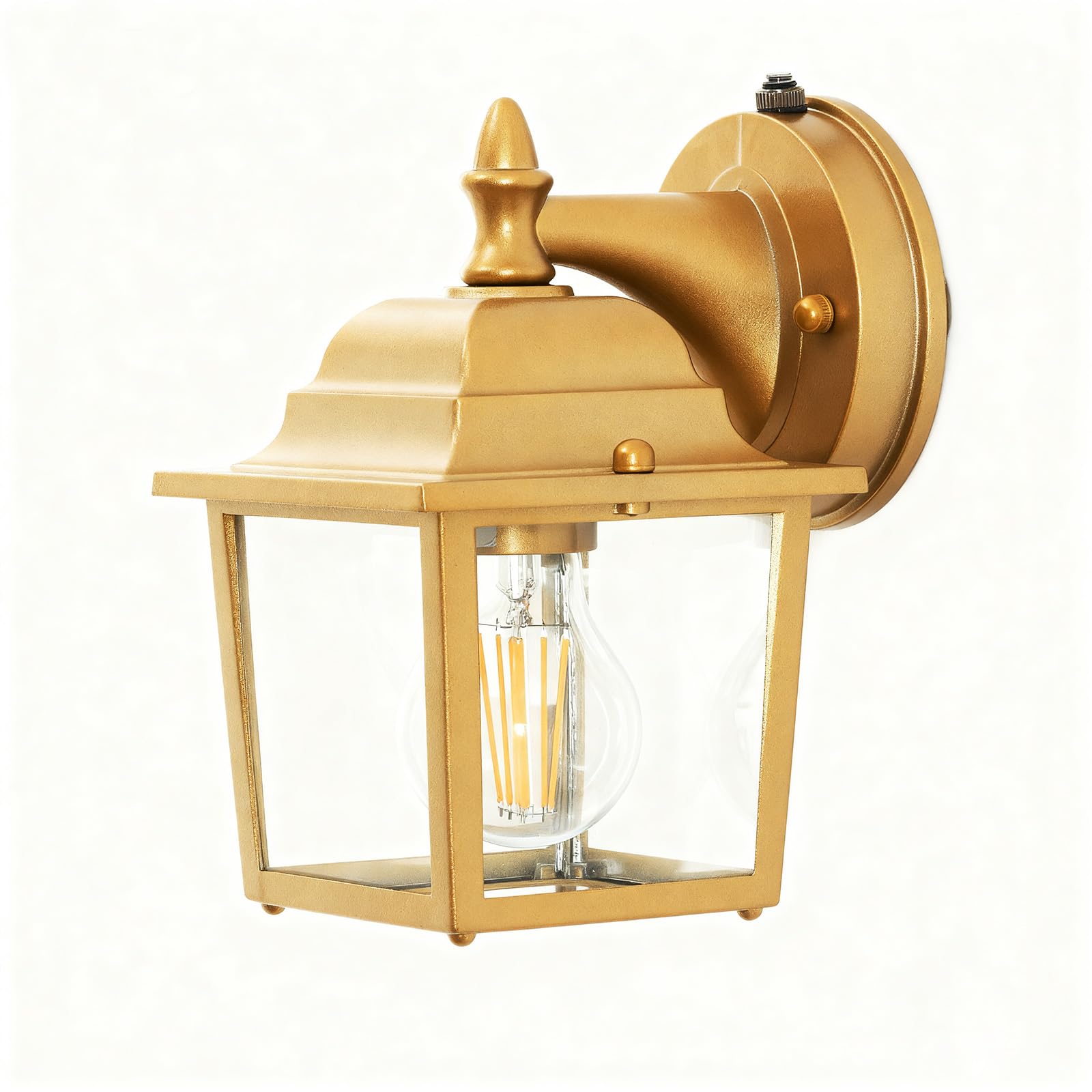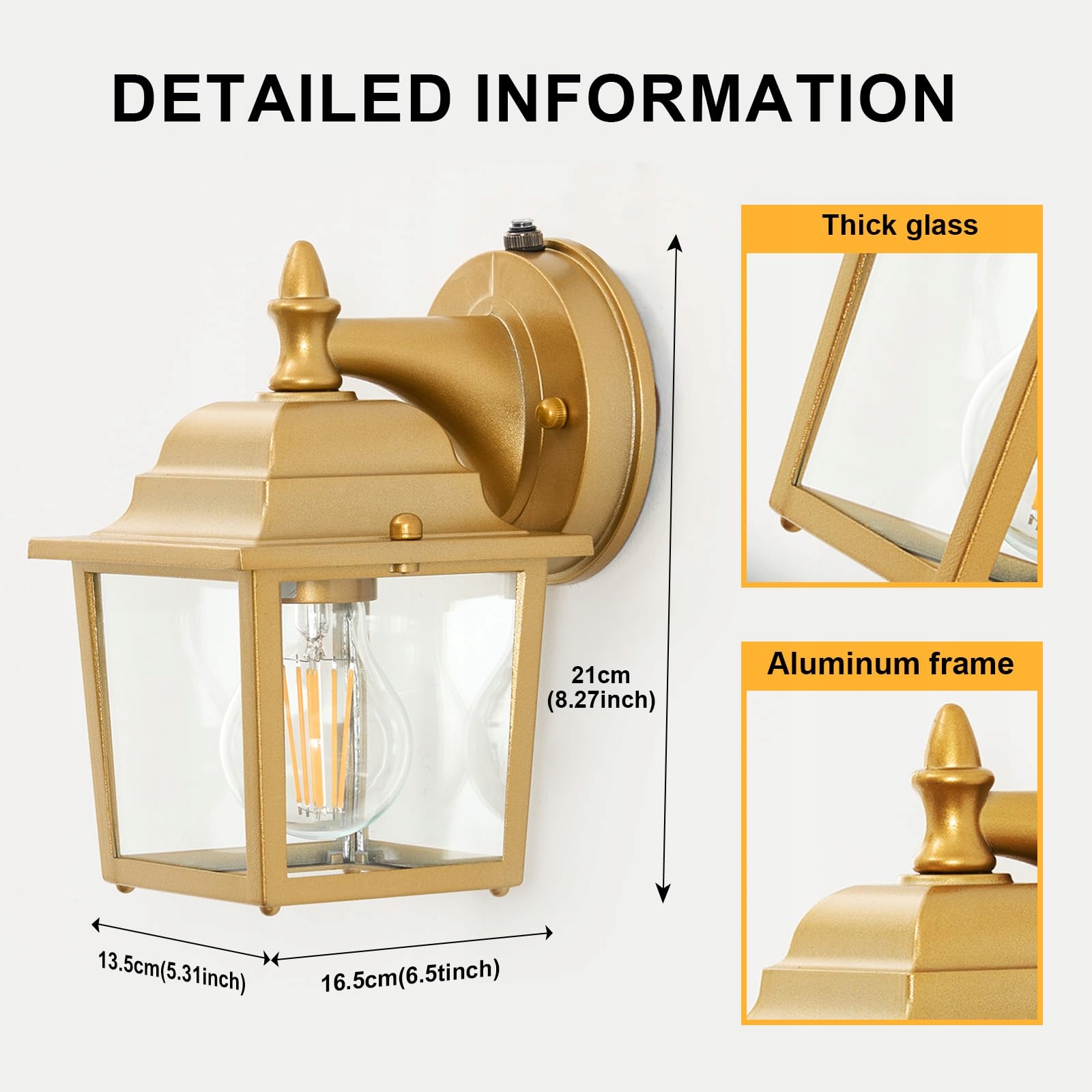 【Wysokiej jakości materiał; elegancki design】 Elegancki design w kolorze złotym i przezroczystym szkle: Ta nowoczesna lampa ścienna zachwyca wysoką jakością wykonania. Obudowa ze złotego aluminium jest odporna na warunki atmosferyczne i trwała. Połączenie z przezroczystym kloszem tworzy elegancki wygląd, który wizualnie podnosi wartość Twojego domu.