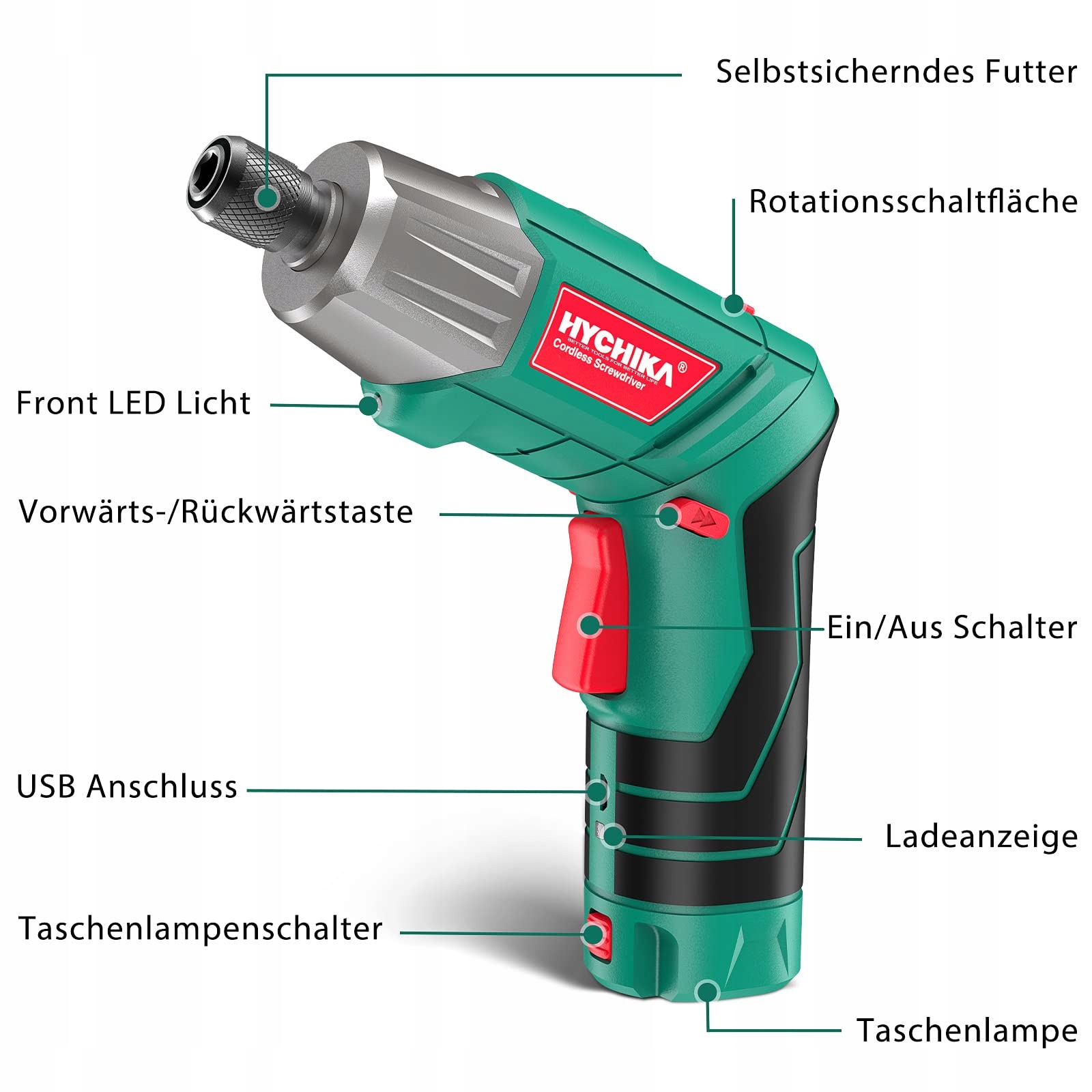 HYCHIKA 6Nm Cordless Screwdriver 2000mAh 3,6V 35 Accessories LED USB