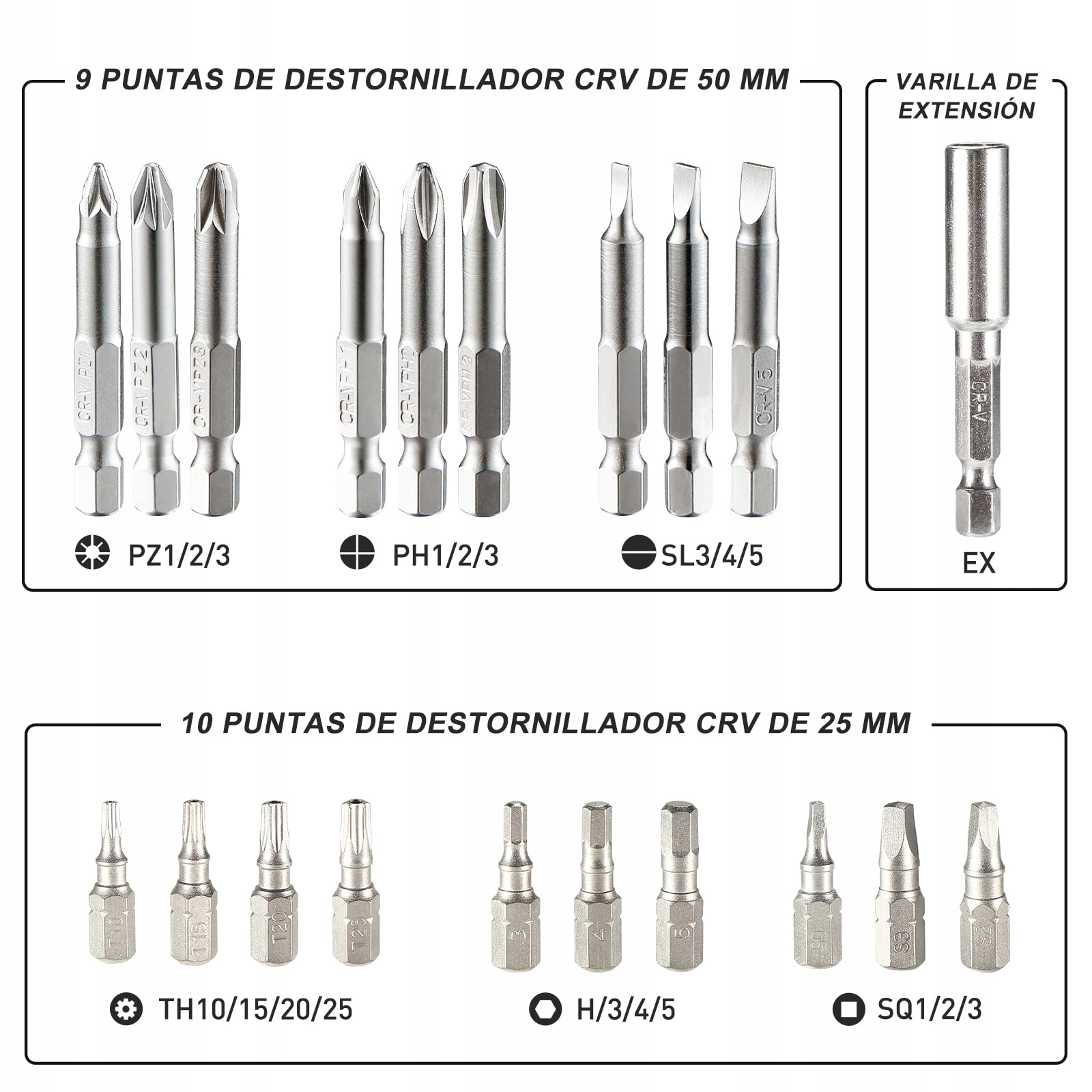 ZAWARTOŚĆ OPAKOWANIA: 1 x Wkrętarka akumulatorowa HYCHIKA 3,6V, 10 x 25 MM BIT WKRĘTAKA CRV, 9 x 50 MM BIT WKRĘTAKA CRV, 1x PRZEDŁUŻACZ, 1 x instrukcja obsługi