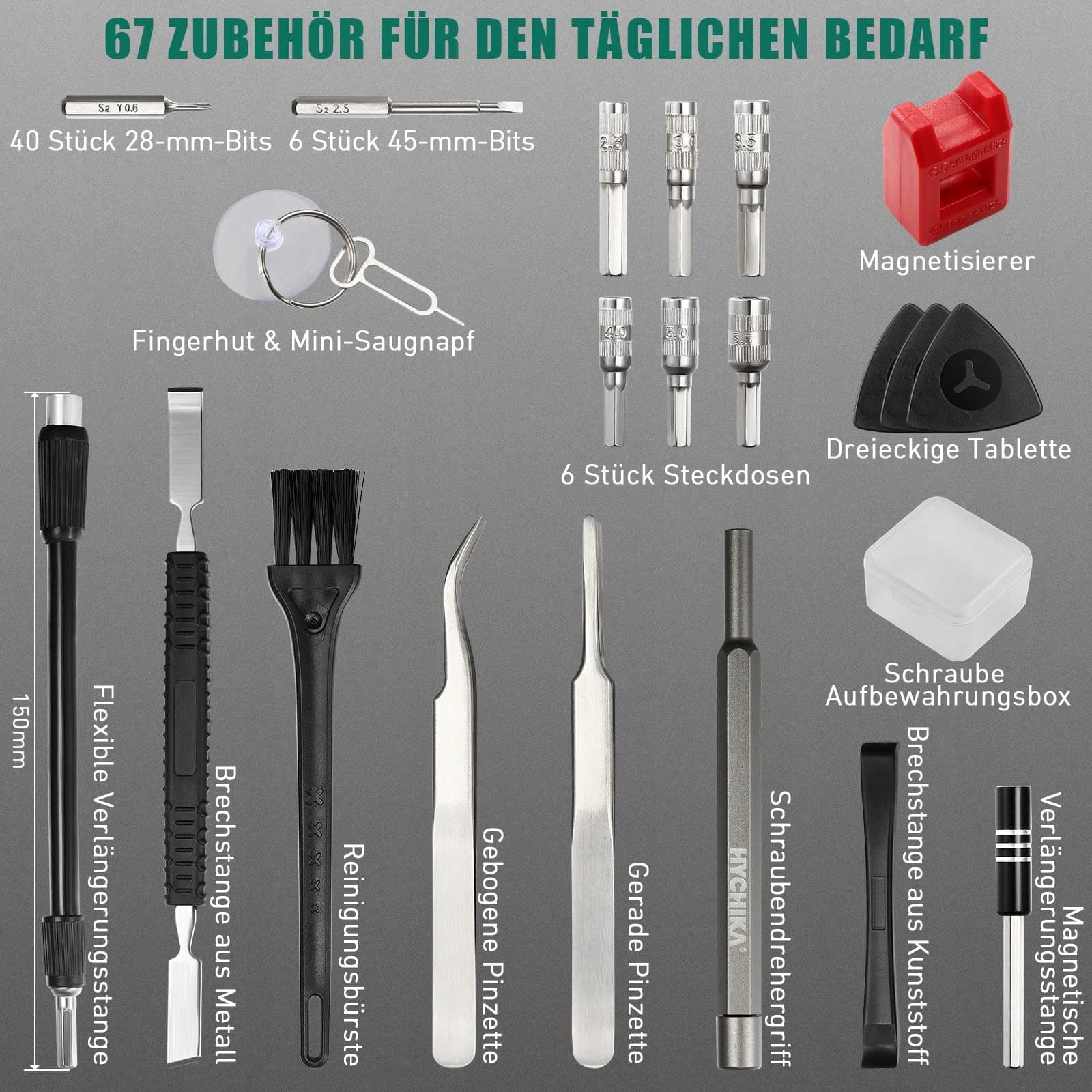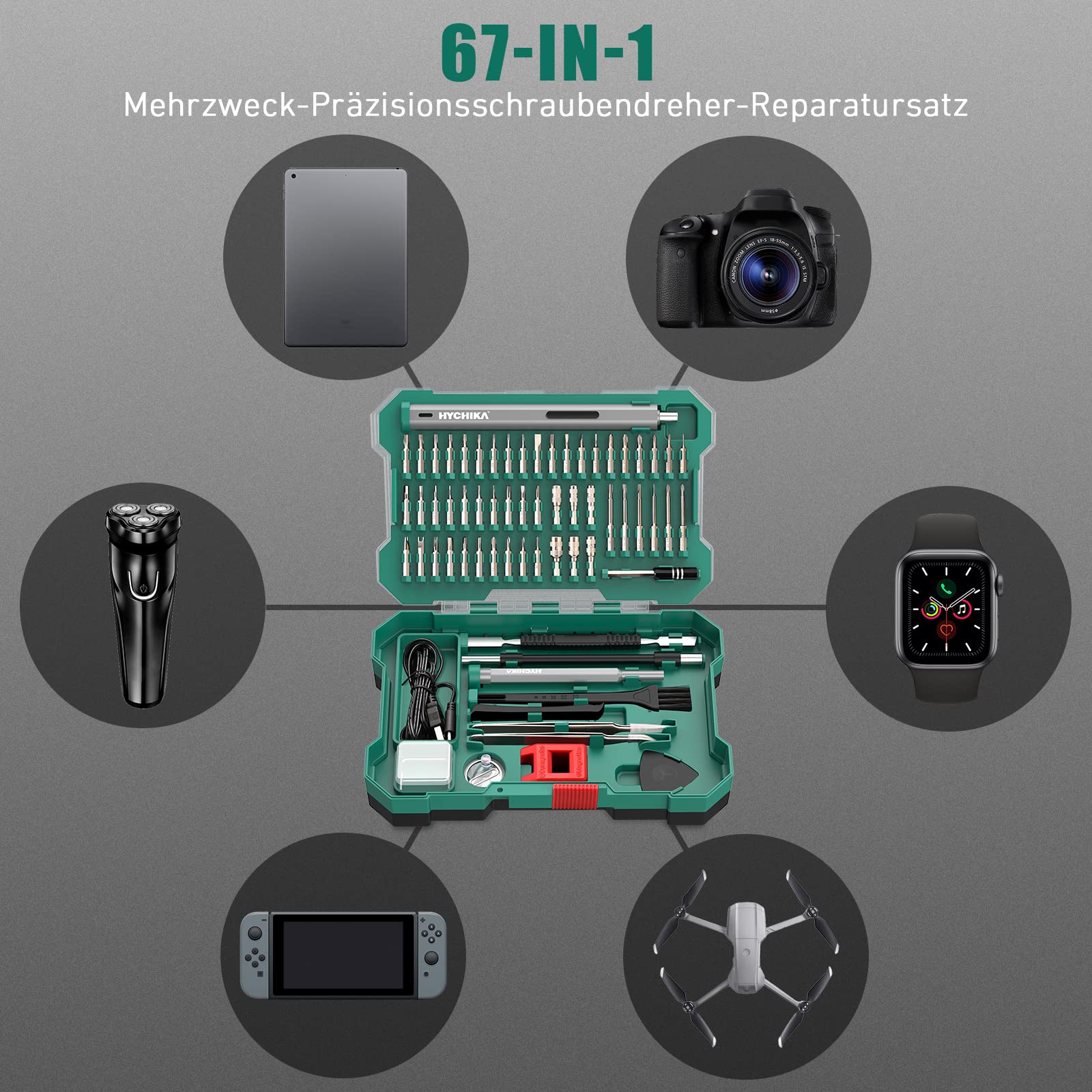 HYCHIKA Elektryczna precyzyjna wkrętarka zestaw dla precyzyjnych mechaników, 67 w 1 mini zestaw narzędzi dla precyzyjnych mechaników, narzędzia do naprawy dla smartfonów, tabletów, konsol, kamer, zegarków itp.