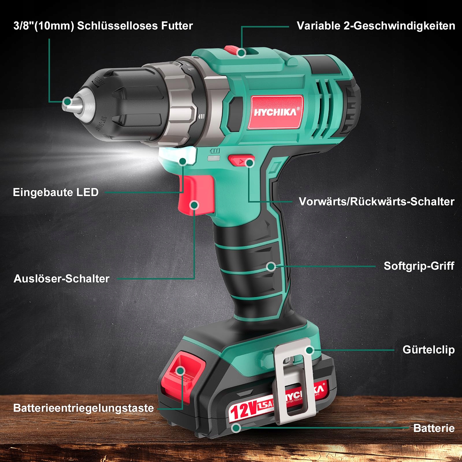 🛠️Zestaw narzędzi z wiertarką: Z akumulatorowym wkrętakiem 12V, maksymalne moment obrotowy 30Nm, ustawienie momentu obrotowego 21+1 biegów, dwa ustawienia prędkości 0-400RPM/0-1500RPM. Samozaciskowy uchwyt 3/8 cala (10mm), duża średnica zacisku, wygodny do ładowania i rozładowywania akcesoriów. Oświetlenie LED z przodu dla łatwego użycia w słabym świetle lub w ciemnych zakamarkach. Przełącznik do przodu i do tyłu dla łatwego wkręcania i wykręcania śrub.