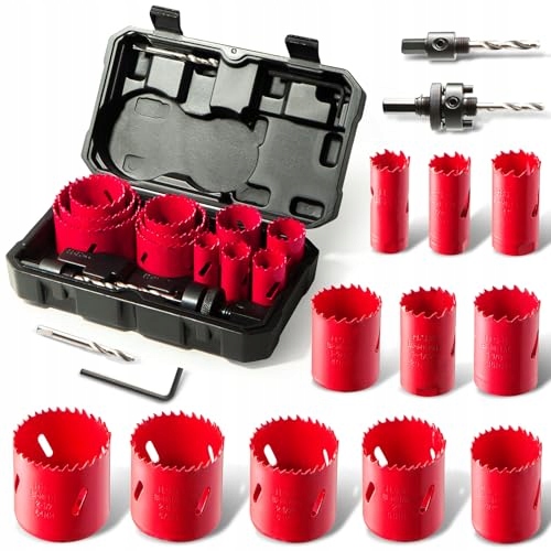 Zestaw wierteł HYCHIKA Bimetal, 17 sztuk wierteł Ø20mm-68mm, maksymalna głębokość cięcia 40mm, idealny do wiercenia w metalu miękkim, drewnie, płycie PVC i płycie plastikowej