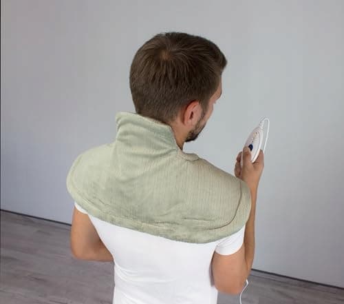 Hydas poduszka grzewcza na szyję i ramiona elektryczna, bezpieczne i ukierunkowane ciepło dla szyi, pleców, ramion, szczególnie miękki materiał, w tym ochrona przed przegrzaniem (100 W, 220-240V), zielony, standard | 1 opakowanie