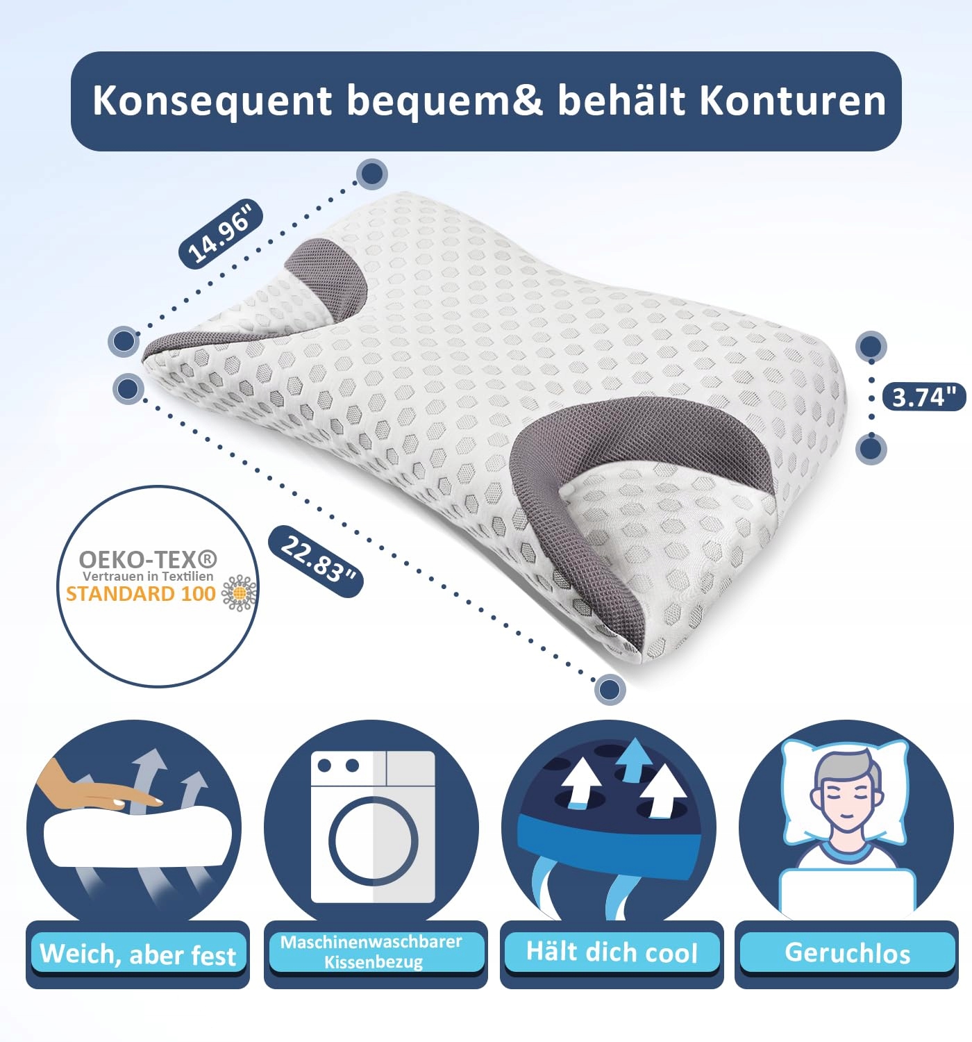 Oddychające i zmywalne poszewki na poduszki: Specjalna oddychająca poszewka na poduszkę odprowadza ciepło i pozwala na swobodny przepływ chłodnego, świeżego powietrza, utrzymując idealną temperaturę. Łatwo zdejmowalna do prania w pralce. Materiał na wierzchu jest bardzo przyjemny dla skóry. Zapewnia komfortowy sen, o jakim zawsze marzyłeś!