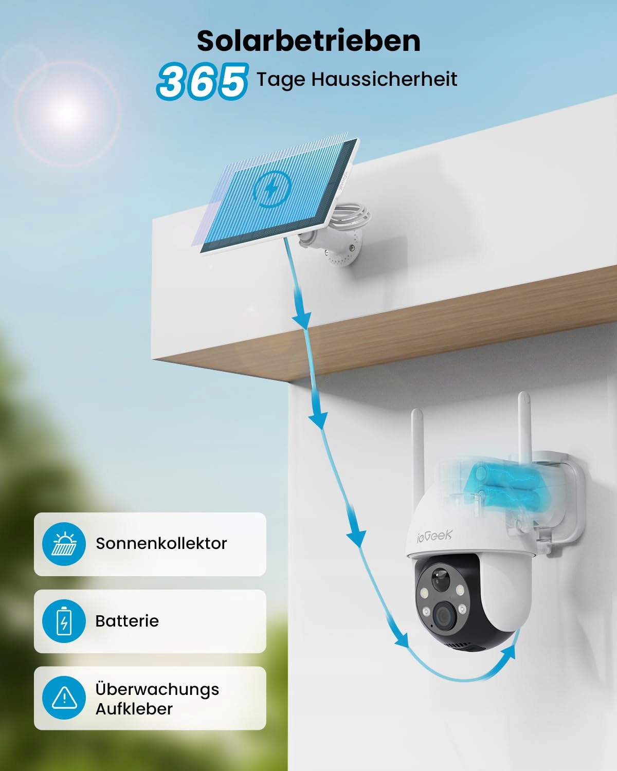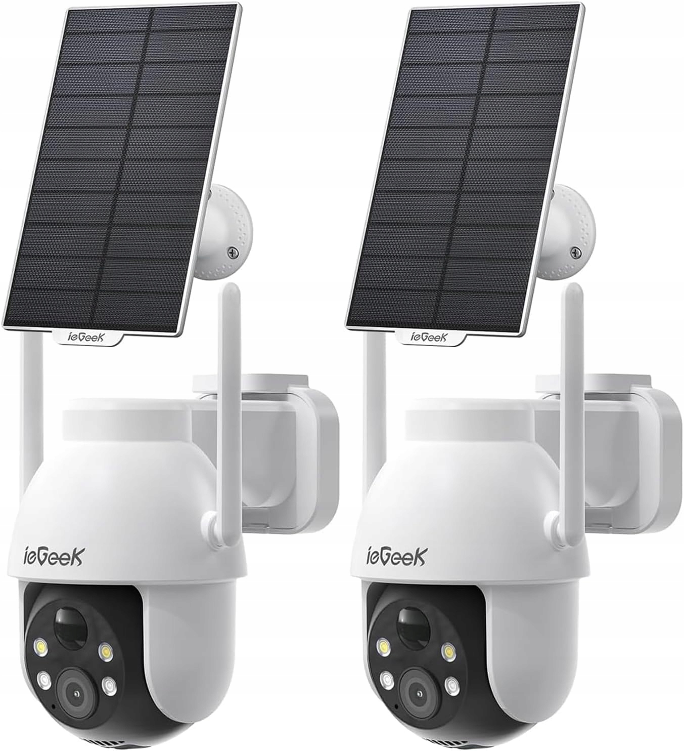 🥇[100% bezprzewodowa i ładowana energią słoneczną]🔋(2Pcs) Kamera monitorująca ieGeek 100% bezprzewodowa z wbudowanym akumulatorem i panelem słonecznym zapewniającym ciągłe zasilanie. Łatwa do zainstalowania, może być montowana na ścianie / w zestawie. Kamera wifi 2.4GHz z zewnętrzną anteną 4dBi, odbiór sieciowy jest o 70% lepszy niż w innych produktach.