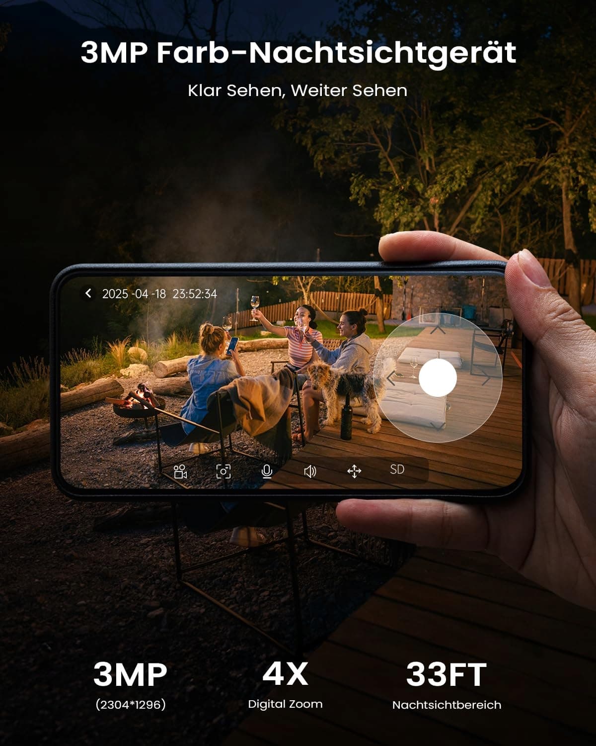 【𝟐𝐊 Ultra HD i kolorowy tryb nocny】Ta solarna kamera WLAN do użytku zewnętrznego jest wyposażona w 𝟑𝐌𝐏 sensor CMOS, który obsługuje 𝟑𝟓𝟓° 𝐨𝐛𝐫𝐨𝐭 + 𝟗𝟎° 𝐩𝐨𝐤𝐥𝐨𝐧 – w połączeniu z 𝟒𝐱 zoomem cyfrowym umożliwia ciągły monitoring bez martwych stref. Kamera do monitoringu posiada innowacyjny dwukolorowy system LED (4 czerwone/białe światła), który inteligentnie przełącza się między trybem podczerwieni a trybem kolorowym, dostarczając wyraźne kolorowe obrazy nawet w całkowitej ciemności. Idealna jako kamera do monitoringu zewnętrznego z akumulatorem do niezawodnych nagrań wideo w dzień i w nocy.
