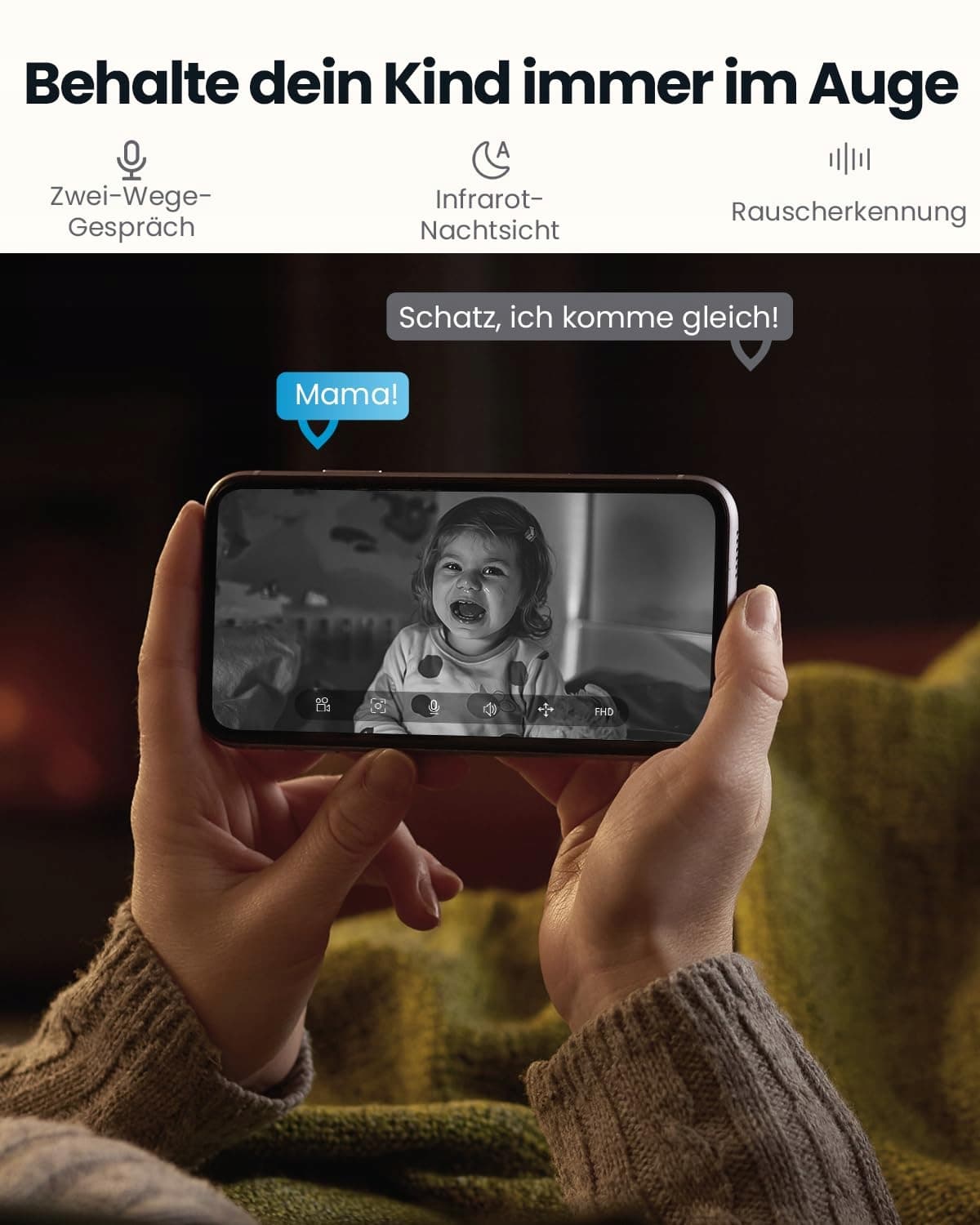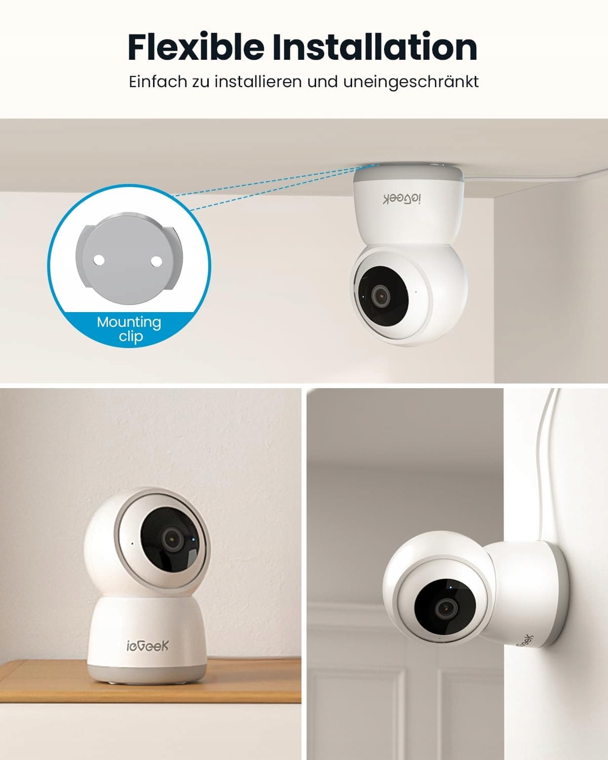 【Dwupasmowe WiFi, niezawodne połączenie】Kamera monitoringu ieGeek do użytku wewnętrznego WLAN obsługuje WiFi 2,4GHz/5GHz, sygnał 5G jest silniejszy, szybszy i bardziej płynny; sygnał 2,4G ma większy zasięg transmisji i szerszy obszar połączenia. Kamera WiFi obsługuje także parowanie jednym dotknięciem, co zwiększa szybkość połączenia o 50%. Niezawodne połączenia dla bezpieczeństwa Twojego domu.