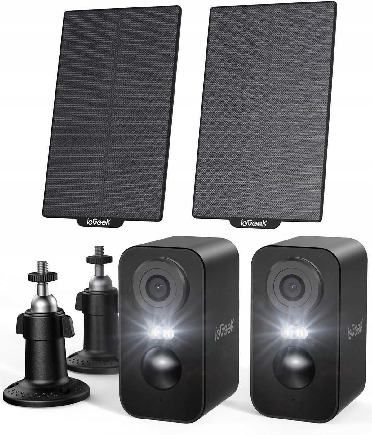 ieGeek 2K (Typ-C) Kamera monitorująca na zewnątrz z akumulatorem bezprzewodowym i panelami słonecznymi, akumulator 5200mAh, kamera monitorująca na zewnątrz WLAN, detekcja ruchu PIR, audio dwukierunkowe, kamera Alexa, czarna, 2 szt., IP65