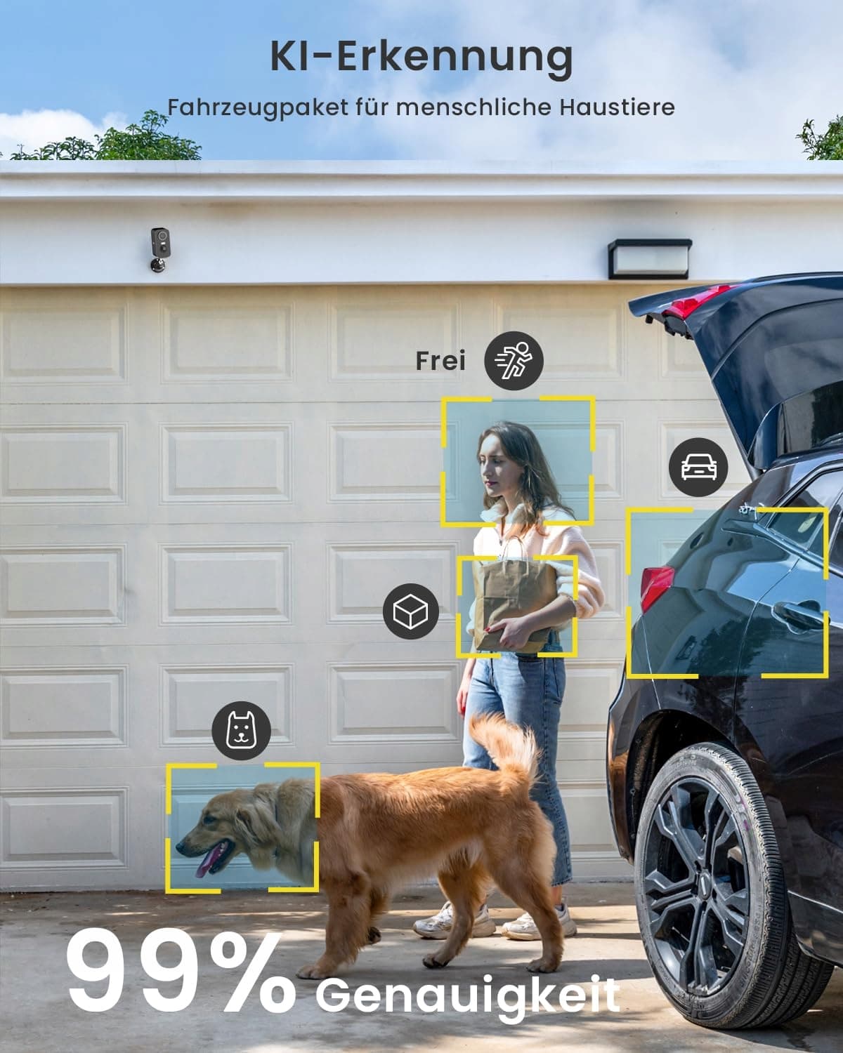 Kompatybilna z Alexą i chmurą/ kartą pamięci: Ta bezprzewodowa kamera monitorująca jest kompatybilna z funkcją inteligentnego głosu Alexa, co pozwala jej łatwo stać się częścią 'Inteligentnego Domu'. Ponadto kamera wspiera przechowywanie w chmurze i na karcie pamięci, a Ty możesz wybrać dowolną metodę przechowywania wideo. (Uwaga: nie wspiera WiFi 5GHz i do detekcji zwierząt domowych oraz innych przedmiotów wymagane jest subskrypcja).