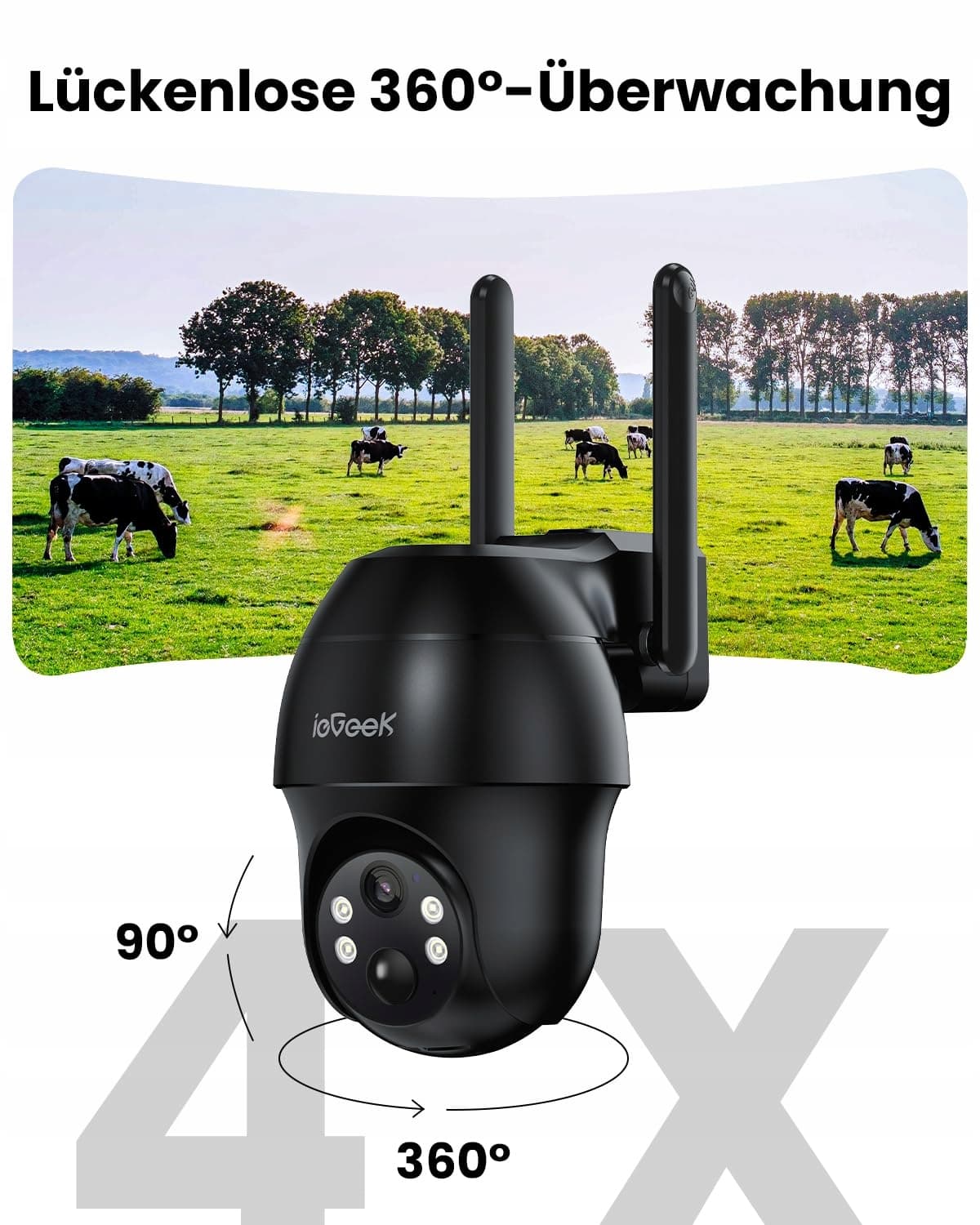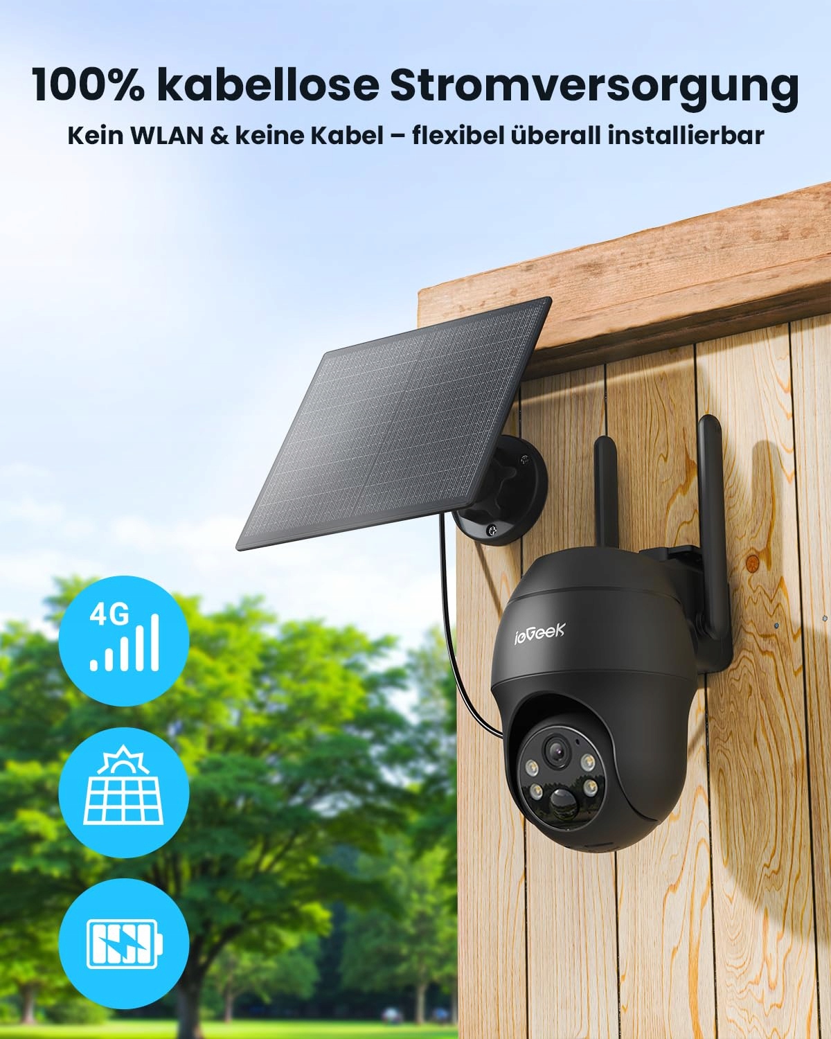 ieGeek kamera monitorująca z kartą SIM - 4G LTE kamera solarna na zewnątrz – 2K 360° bezprzewodowy monitoring z akumulatorem – wodoodporna kamera zewnętrzna IP66 bez Wi-Fi, detekcja PIR, sterowanie przez aplikację i dwukierunkowe audio