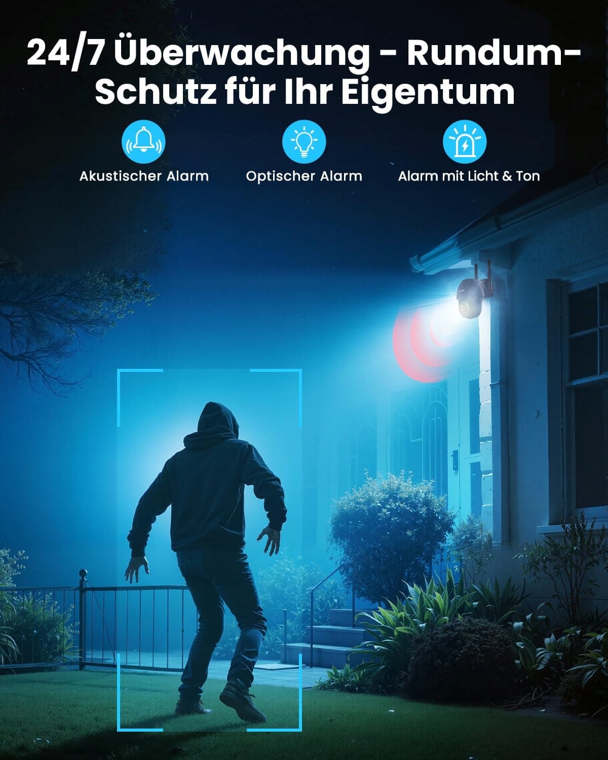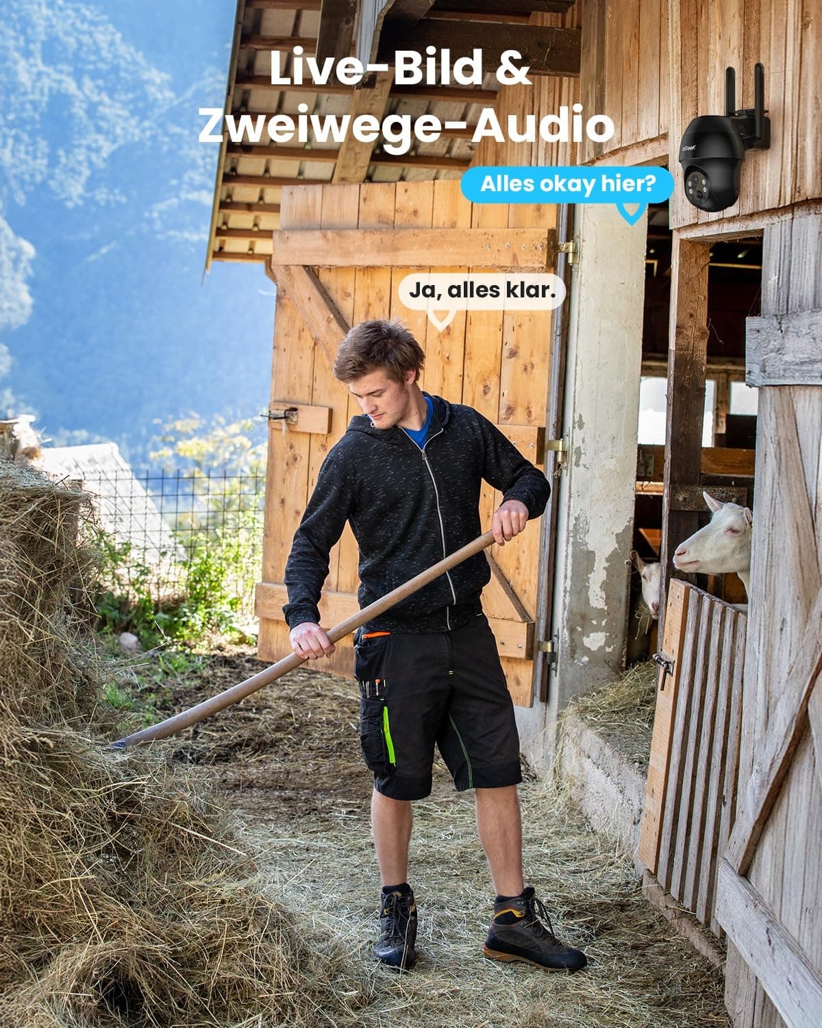【Detekcja PIR ludzi i dwukierunkowe audio】 Kamera zewnętrzna 4G ma czuły czujnik PIR oraz najnowszy algorytm oparty na pikselach (około 98% dokładności), aby szybko i stosunkowo precyzyjnie wykrywać ruchy ludzi/zwierząt. Dostosuj zakres wykrywania w aplikacji – kamera rejestruje tylko wyznaczone obszary i natychmiast wysyła ostrzeżenie na Twój smartfon. Ponadto obsługuje połączenia dwukierunkowe (z odwiedzającymi/nieuprawnionymi) oraz dźwiękowe i wizualne alarmy odstraszające.