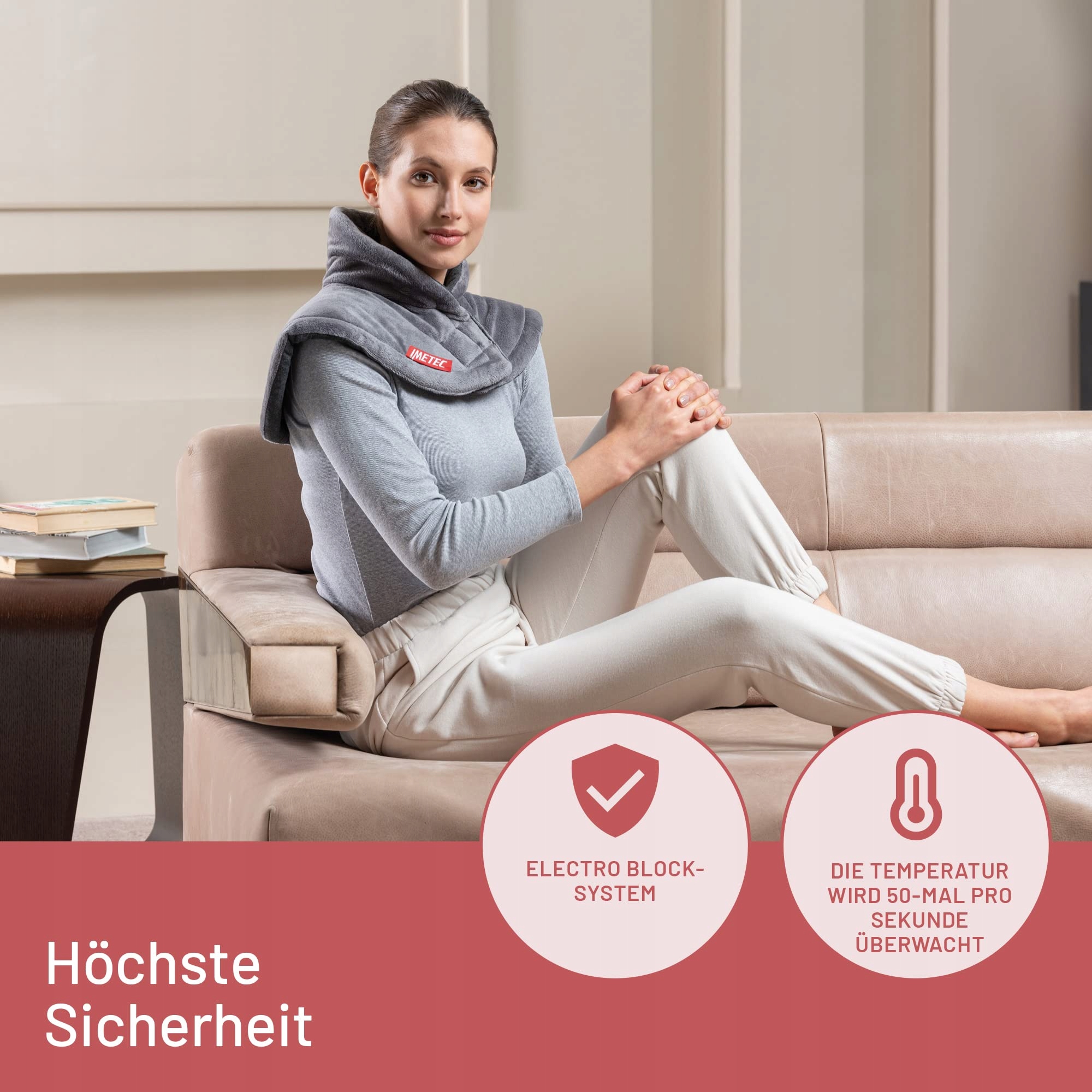 Imetec Intellisense Poduszka grzewcza na szyję i ramiona, poduszka grzewcza 47 x 52 cm, tkanina antyalergiczna, 5 temperatur, system bezpieczeństwa Electro-Block, szybkie nagrzewanie, nadaje się do prania w pralce