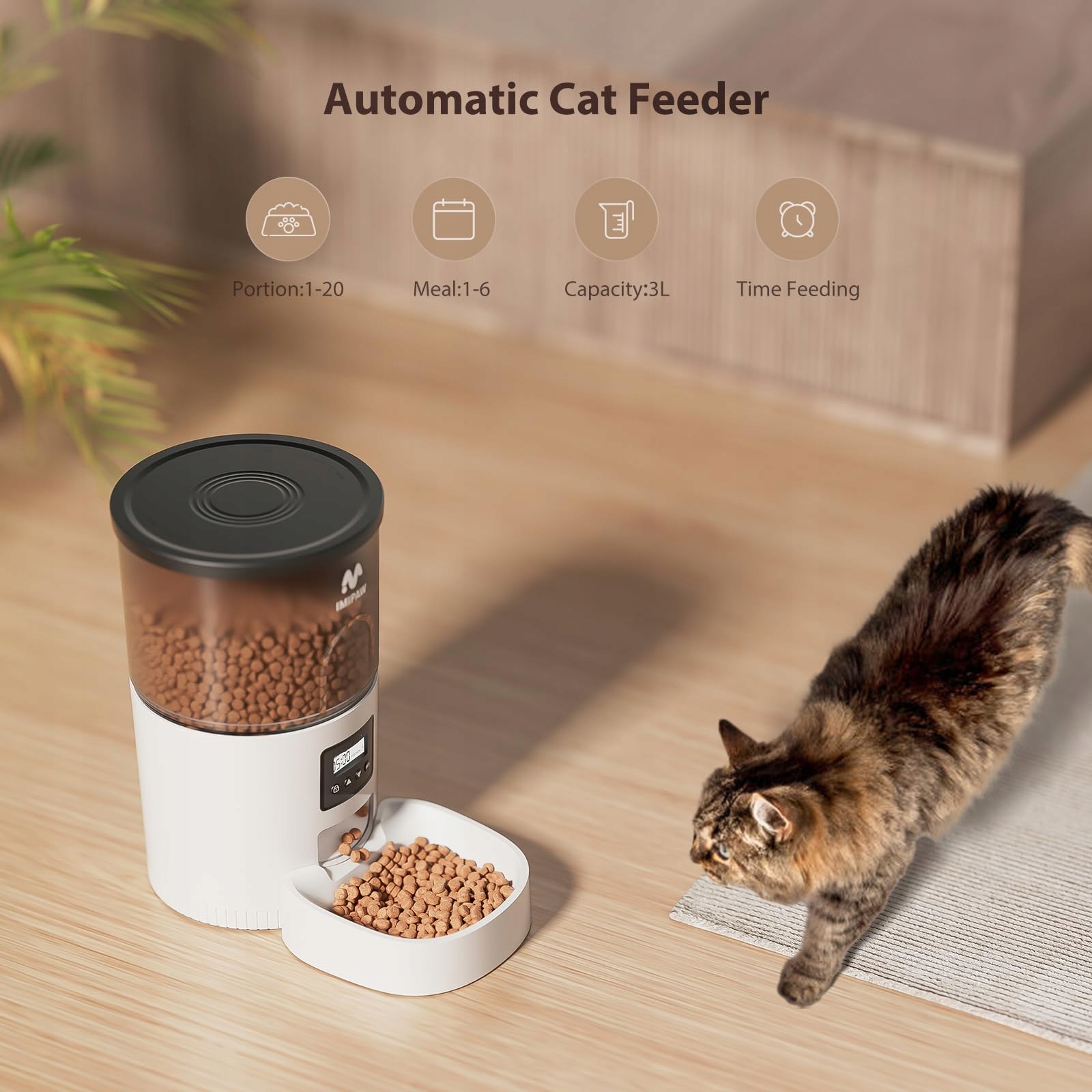 IMIPAW Futterautomat dla kota i fontanna dla kotów, czasowo sterowany dozownik suchej karmy dla zwierząt, programowalna kontrola porcji, 1-6 posiłków dziennie, fontanna dla kotów do picia z filtrem