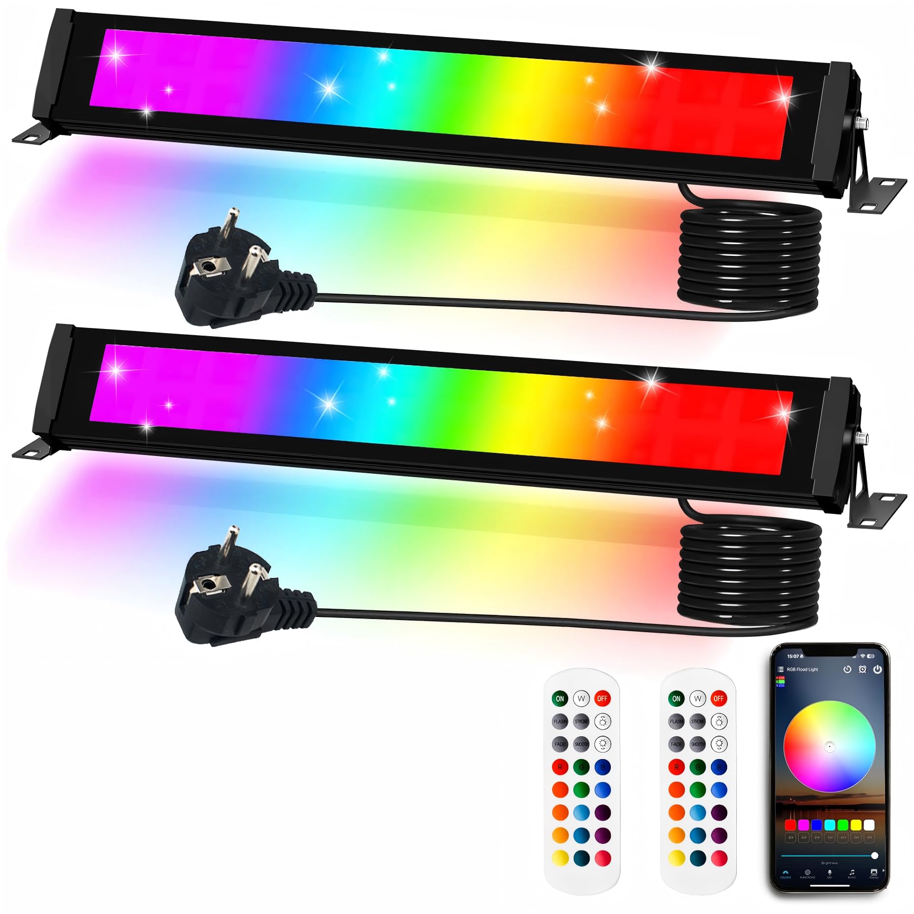Indmird RGB Reflektor 50W, 2 sztuki Reflektory LED RGB z pilotem 360° i aplikacją Bluetooth, RGB LED Wallwasher IP66 wodoodporny Reflektor LED na zewnątrz, światło imprezowe do dyskoteki, sceny, imprez, ogrodu, Halloween