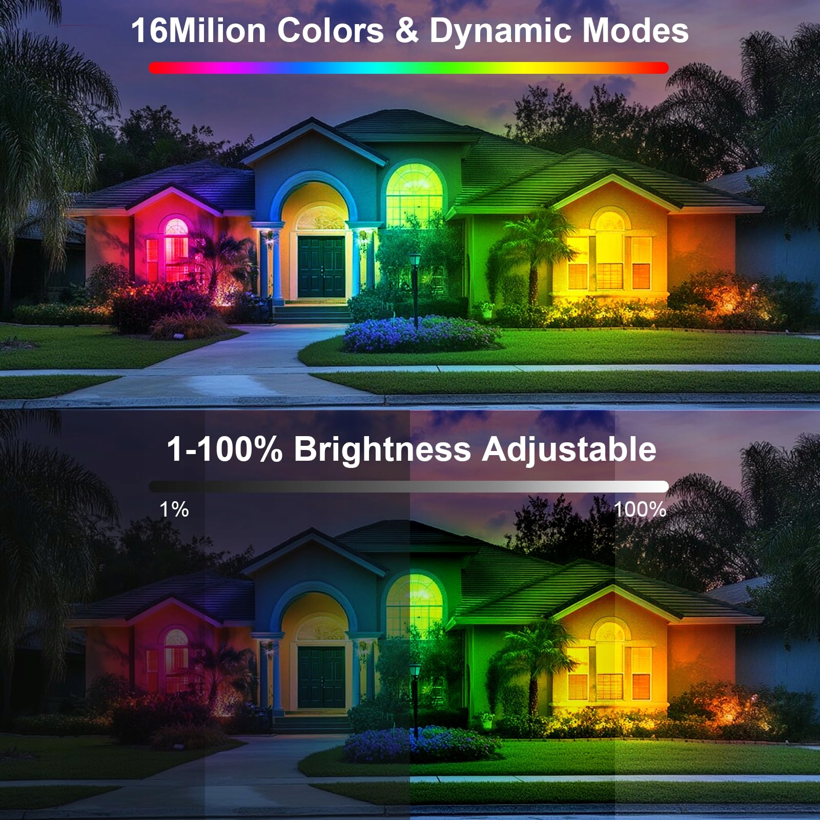 [IP66 wodoodporny] Reflektor RGB na zewnątrz wykonany jest z hartowanego szkła i wysokiej gęstości stopu aluminium, jest wodoodporny zgodnie z normą IP66. Wodoodporny, odporny na wilgoć, kurz, wysoką i niską temperaturę, może pracować wewnątrz i na zewnątrz. To najlepszy wybór do oświetlenia zewnętrznego w ogrodzie, na podwórku, trawniku, w parku, na placu i innych miejscach