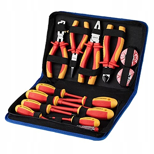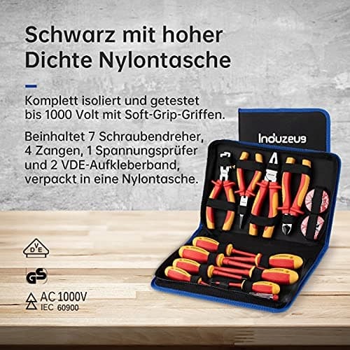 Induzeug 14-częściowy zestaw narzędzi VDE z izolowanymi szczypcami elektrycznymi i zestawem wkrętaków elektrycznych, testowany do 10.000 Voltów