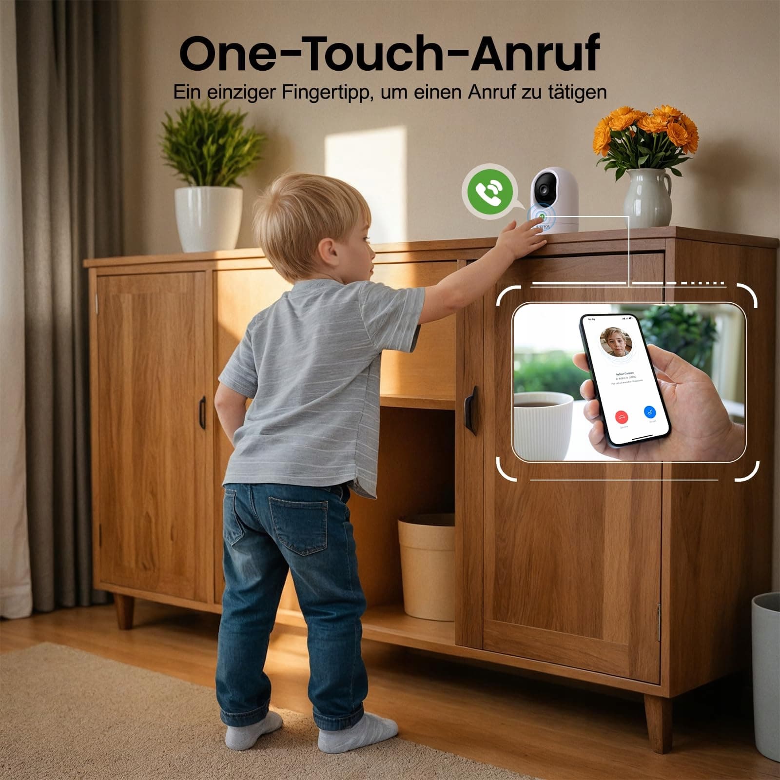 Dwukierunkowe audio i połączenie jednym dotknięciem: Kamera do monitoringu wewnętrznego umożliwia wyraźną dwukierunkową komunikację audio i wideo z rodziną. Specjalnie zaprojektowany przycisk połączenia jednym dotknięciem umożliwia osobom starszym, które rzadko korzystają z urządzeń elektronicznych, lub dzieciom bez urządzeń komunikacyjnych łatwą obsługę. Wystarczy nacisnąć przycisk na kamerze WiFi do użytku wewnętrznego, aby wykonać połączenie na połączony telefon i umożliwić natychmiastową komunikację