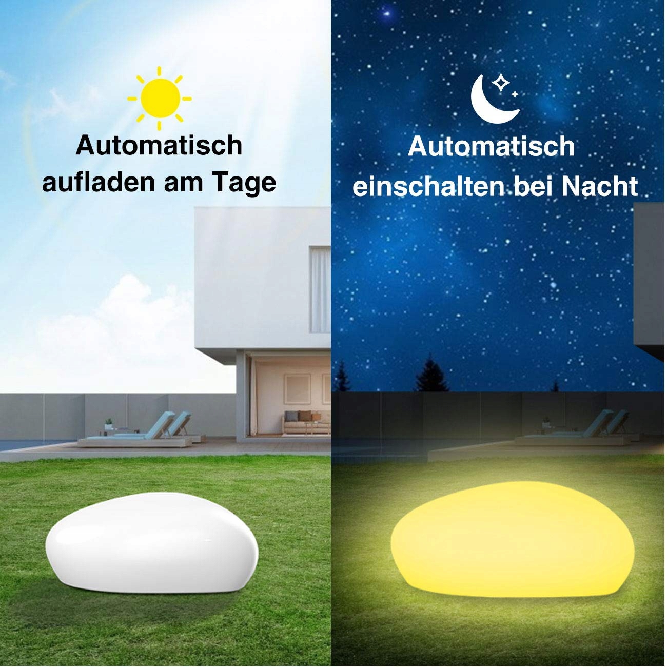 BATERIA 1800MAH & WODOSZCZELNY DESIGN IP 67 - Bateria jest wbudowana w lampę, bateria 1800mAh zapewnia 6-8 godzin oświetlenia latem, lampa solarna będzie świecić przez całą noc. Dzięki wodoodpornemu designowi IP 67, lampa solarna może być używana w różnych warunkach pogodowych (słoneczny dzień / deszcz / śnieg) i środowiskach, idealnie nadaje się do dekoracji ogrodu / balkonu, a nawet jako dekoracja basenu i oświetlenie nastrojowe do salonu / sypialni.