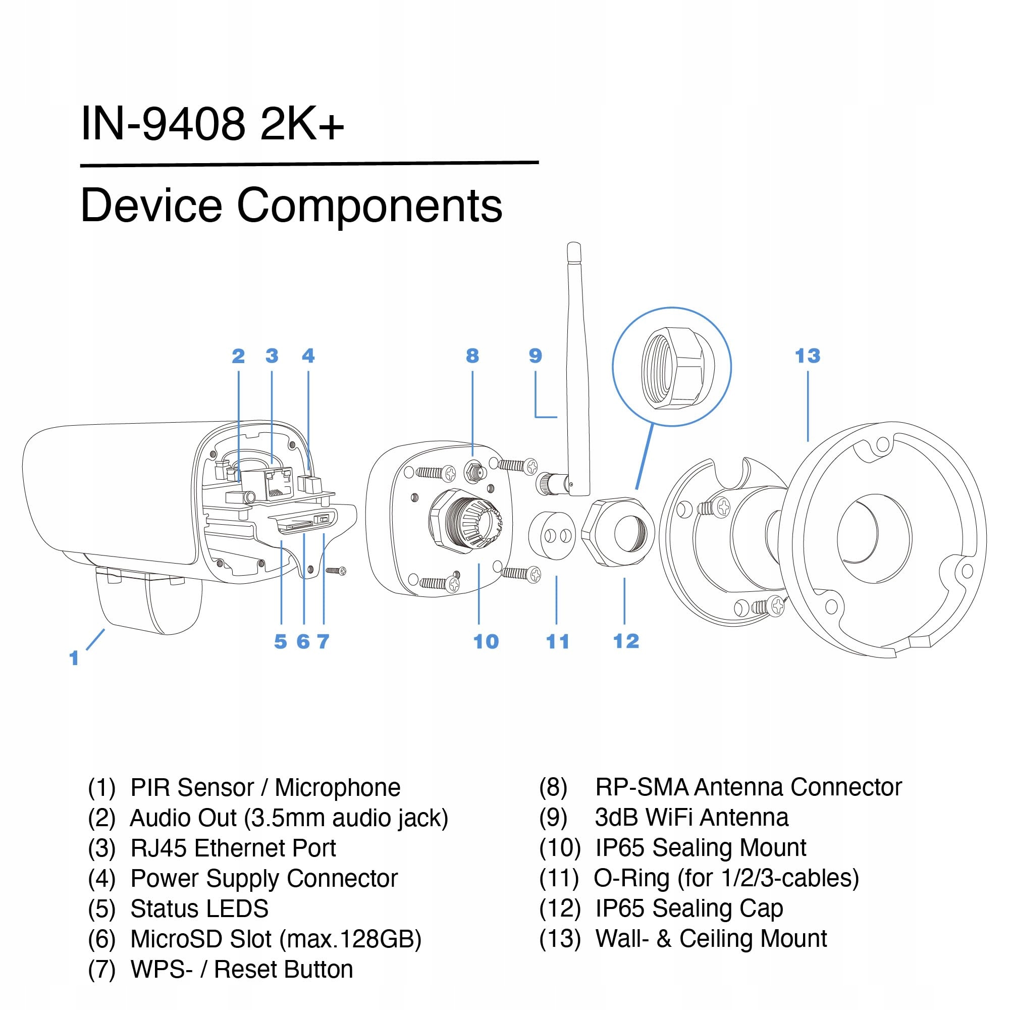 INSTAR IN-9408 2K Czarna Kamera Zewnętrzna AI LAN WLAN HomeKit Weitwinkel | Premium Supply