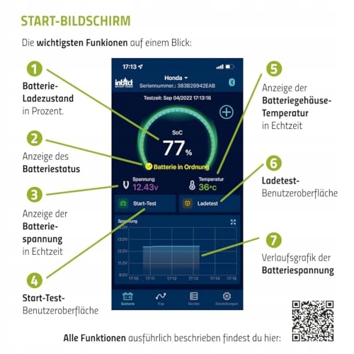 Dane są przechowywane na monitorze akumulatora przez okres do 72 dni, w aplikacji 'intAct Battery Check' można uzyskać dostęp do dowolnych okresów czasu