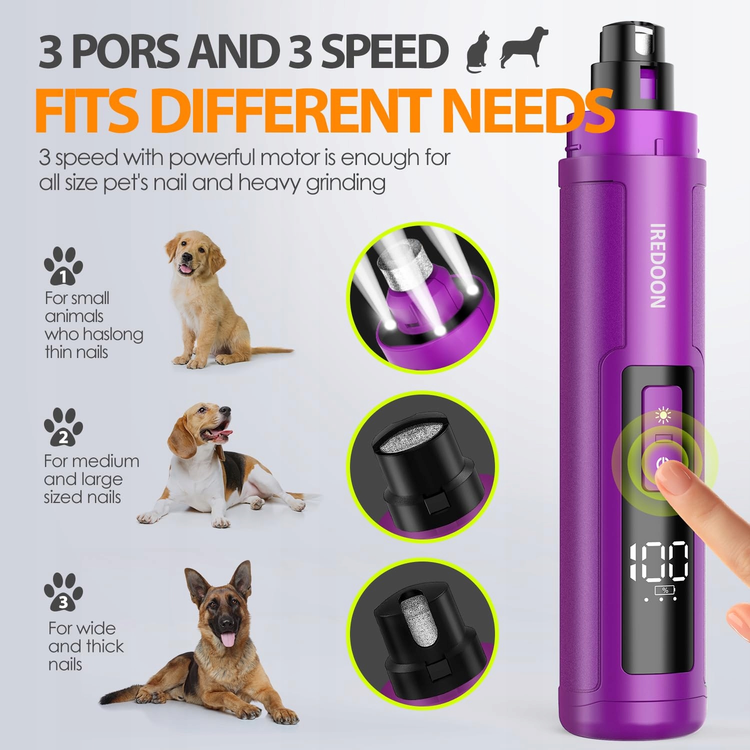 IREDOON Profesjonalna Szlifierka Do Pazurów Dla Psów 3-Biegowa LED
