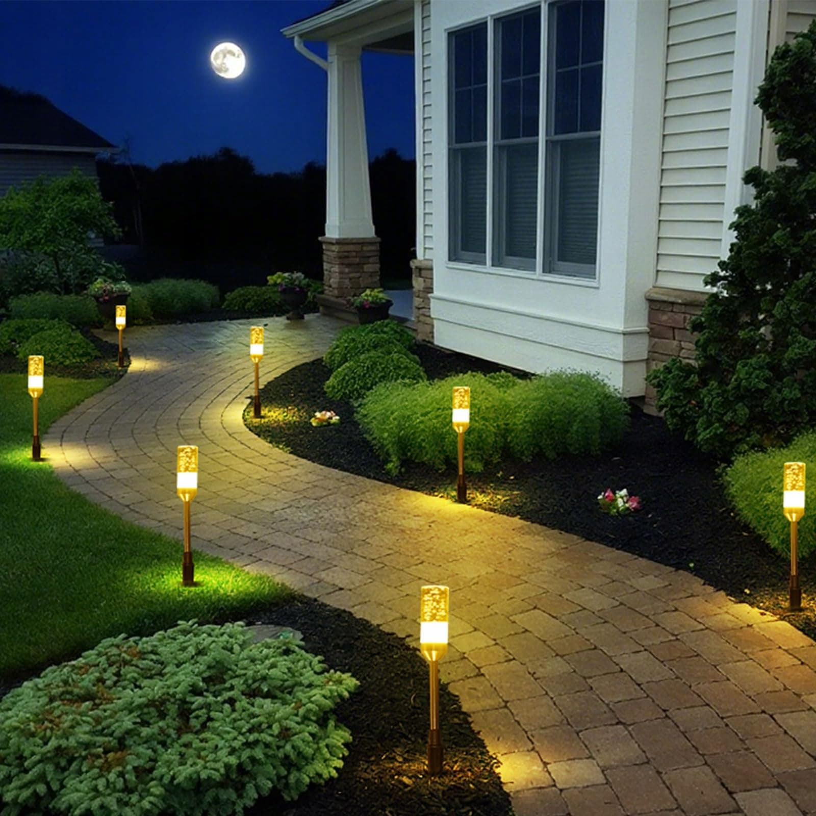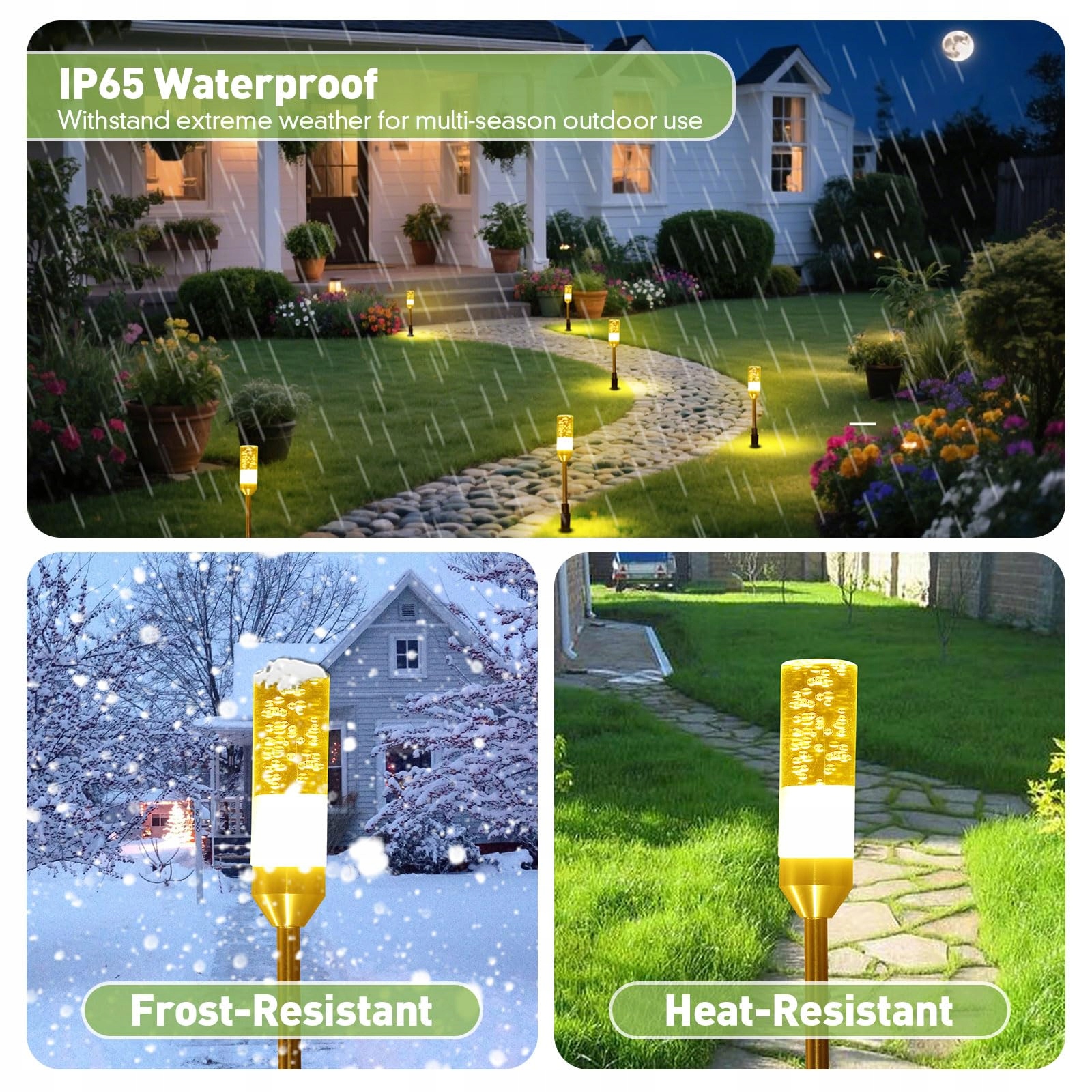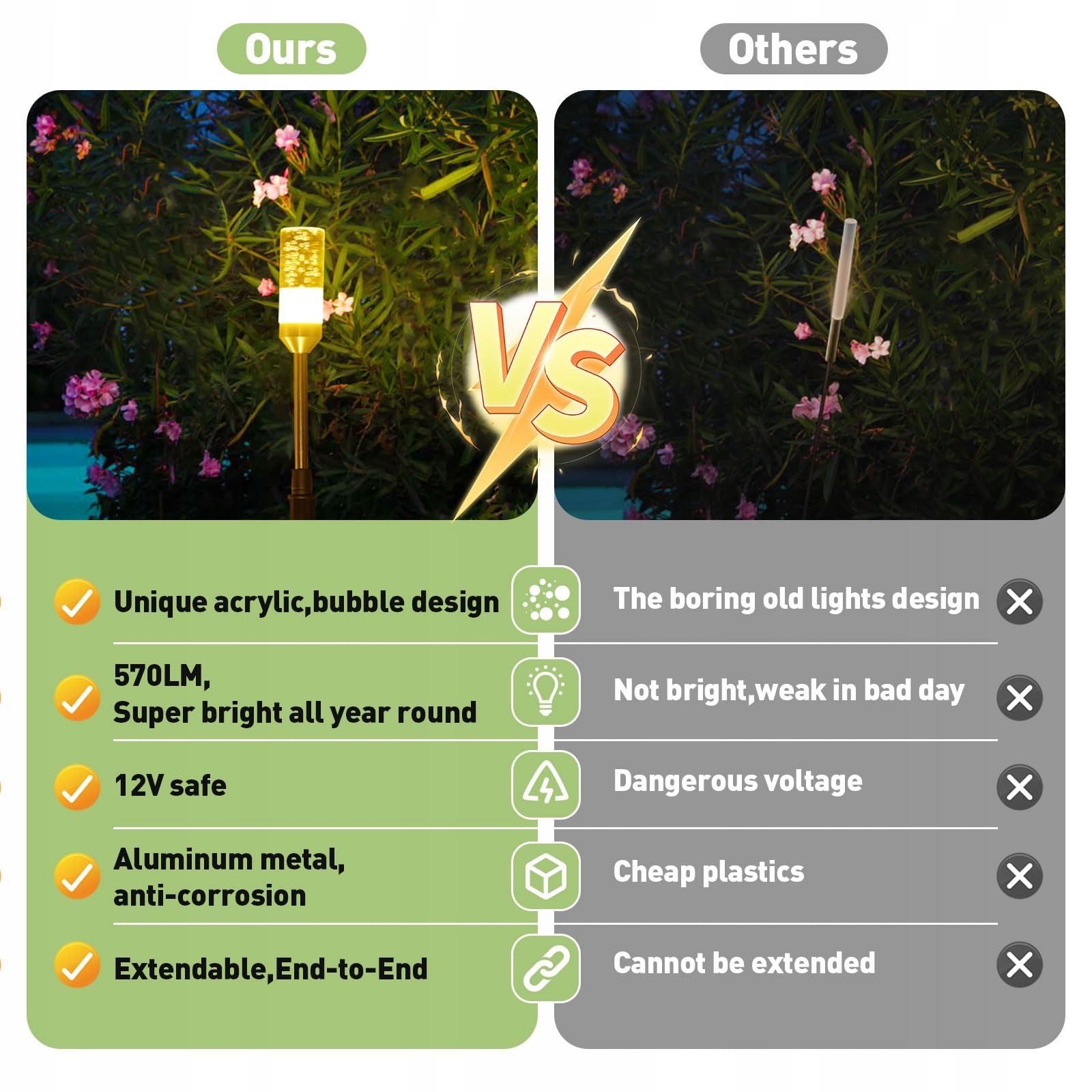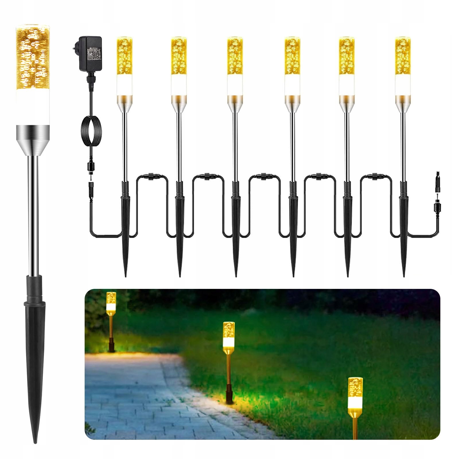 🏡Unikalny design oświetlenia ogrodowego: Zestaw 6 lamp ogrodowych z zasilaniem oferuje ciepłe światło o temperaturze barwowej 2700K oraz wysokiej jakości diody LED. W świetle widoczne są drobne bąbelki, jakby pod nimi znajdował się szereg krystalicznie czystych pereł. Wysoki wskaźnik CRI, emitujący wyraźne światło LED w nocy.
