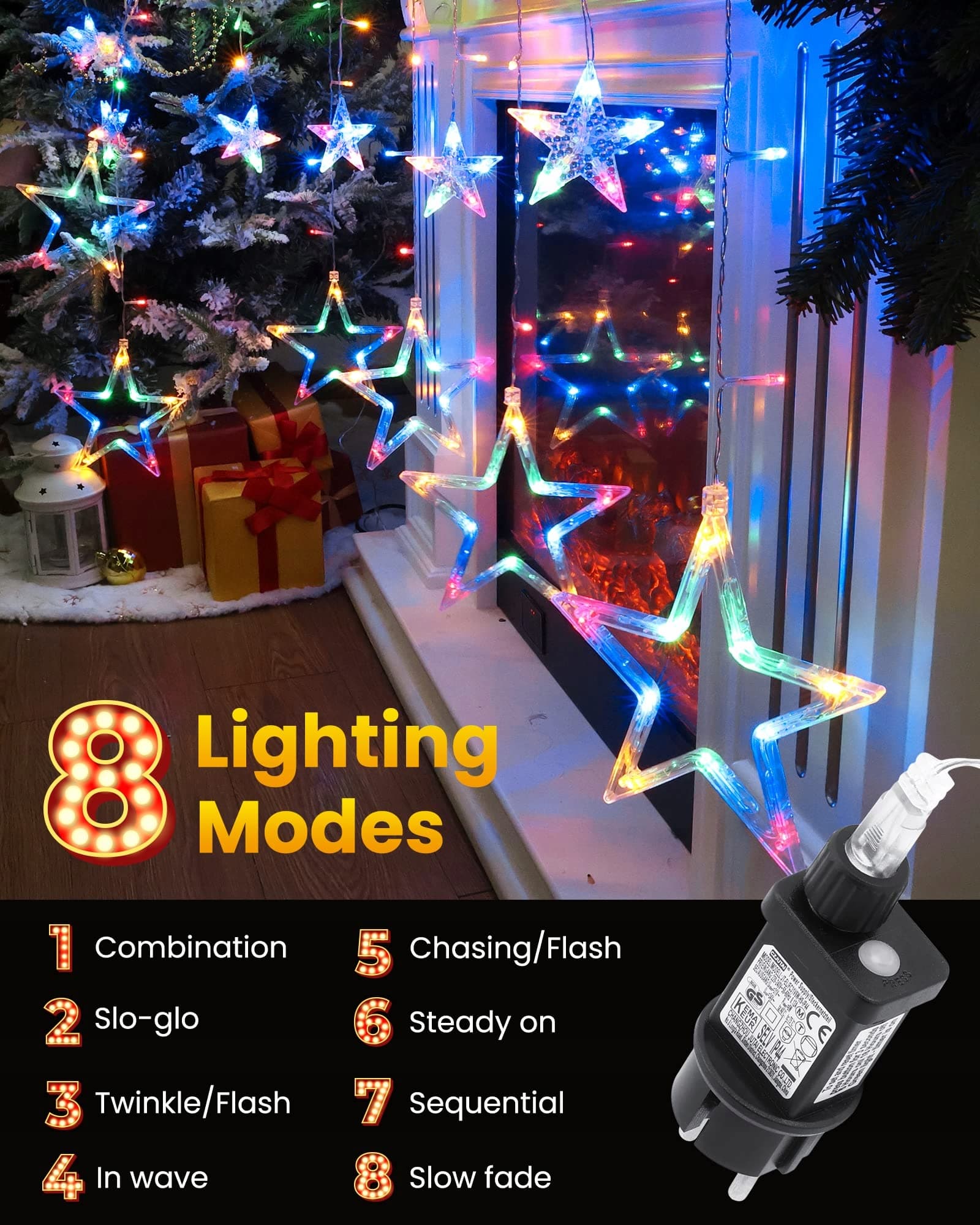 [Bezpieczne i trwałe świąteczne lampki]Lichterkette weihnachtsfenster sterne używa niskiego napięcia DC31V, testowane pod kątem bezpieczeństwa, niskiego zużycia energii i nie przegrzewa się, nawet po długim czasie użytkowania. Chłodne w dotyku i bezpieczne dla dzieci i zwierząt domowych.