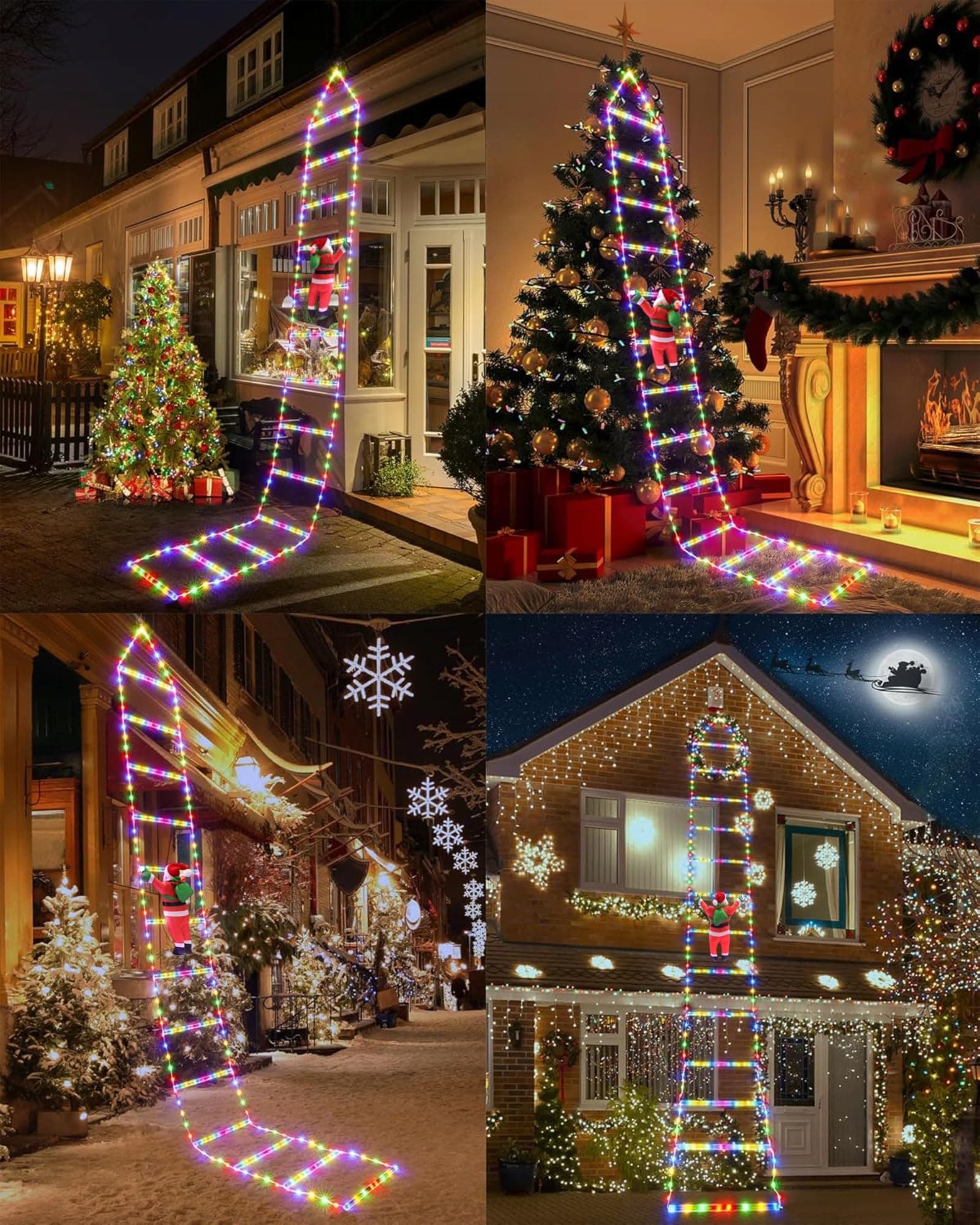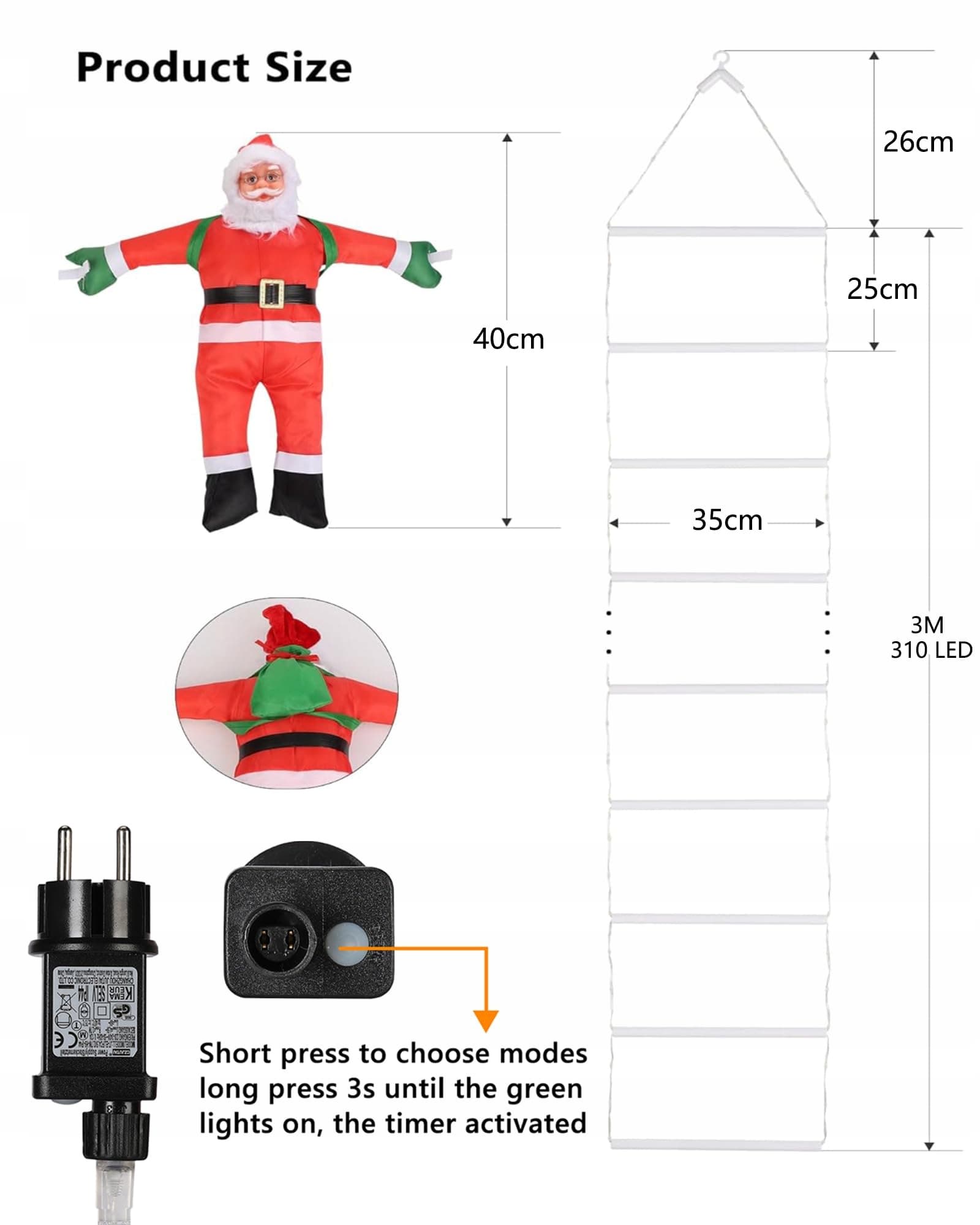 🤶[Demontowalny Mikołaj]40 cm Mikołaj ma rzepy na rękach, które można demontować według uznania i instalować w różnych miejscach na lampie, aby uzyskać różne efekty wizualne. LED lampa choinkowa może być zawieszona wewnątrz lub na zewnątrz, aby stworzyć ciepłą i świąteczną atmosferę na Twoje święta.