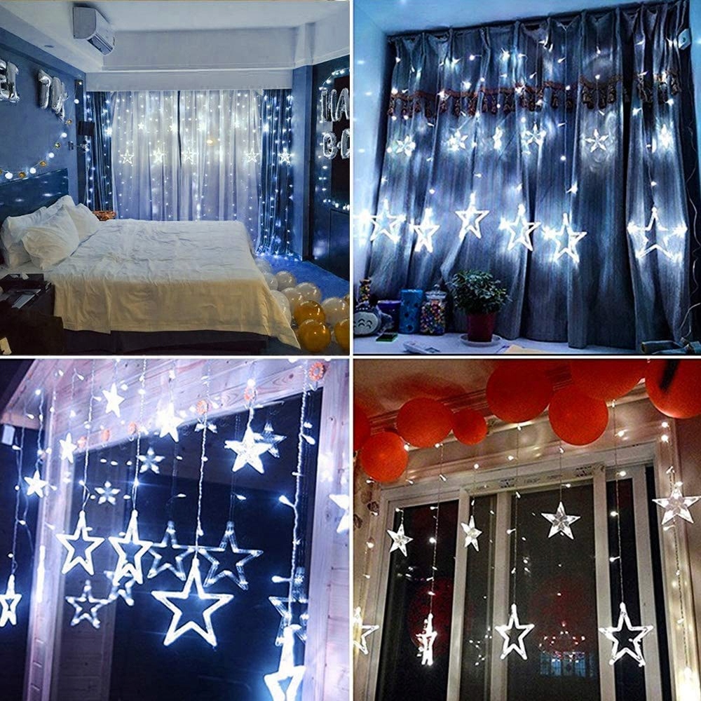 iShabao Lichterkette Sterne Strom 138 LED Weihnachtsbeleuchtung Fenster, 2.4x1m Lichtervorhang Fenster Weihnachten mit 12er Sterne, Lichterkette Innen Sterne mit Timer für Weihnachtsdeko (Weiß)