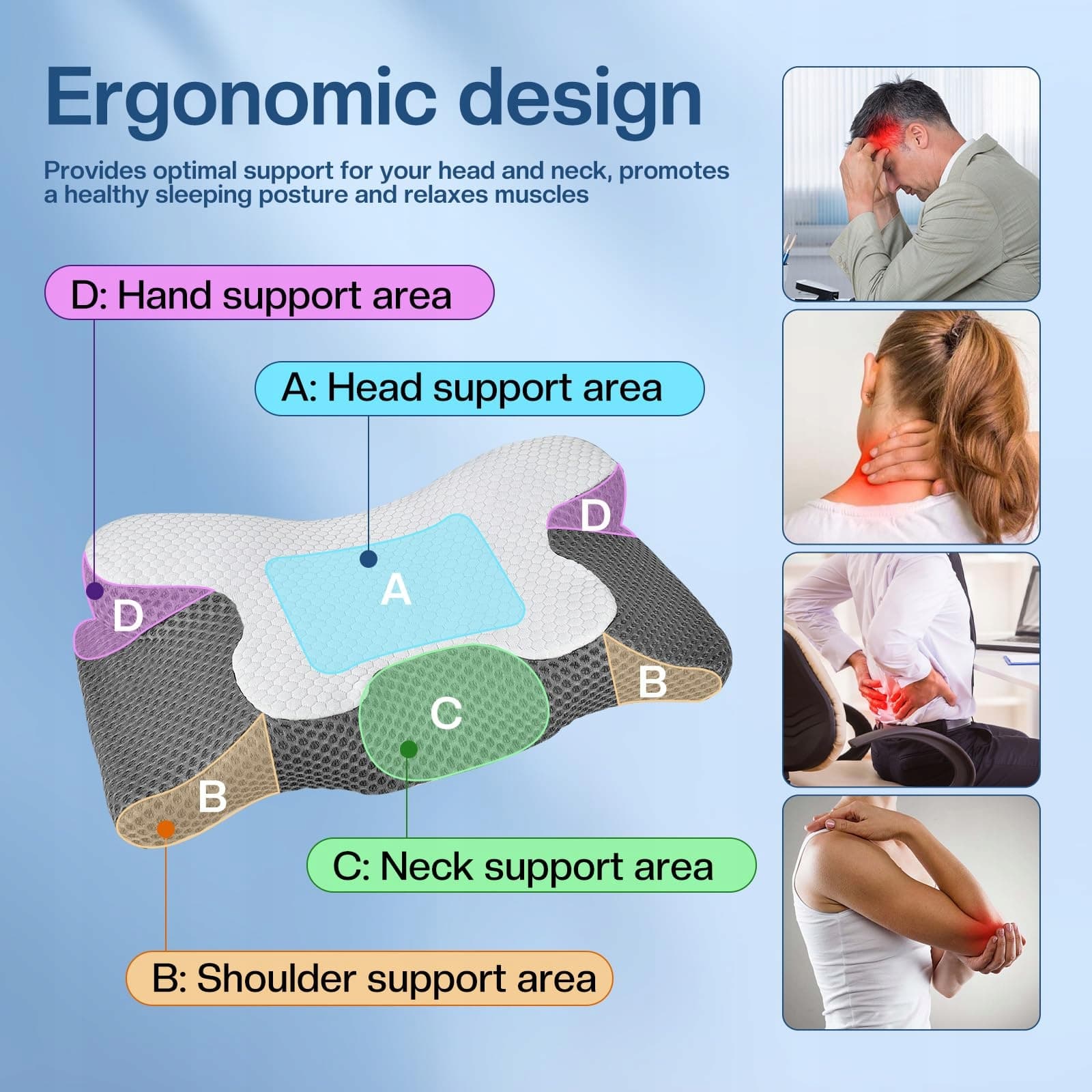 JANUIXCO Poduszka ortopedyczna z pianki memory - Ergonomiczna poduszka na kark i ramiona - Poduszka ortopedyczna dla śpiących na boku, plecach i brzuchu
