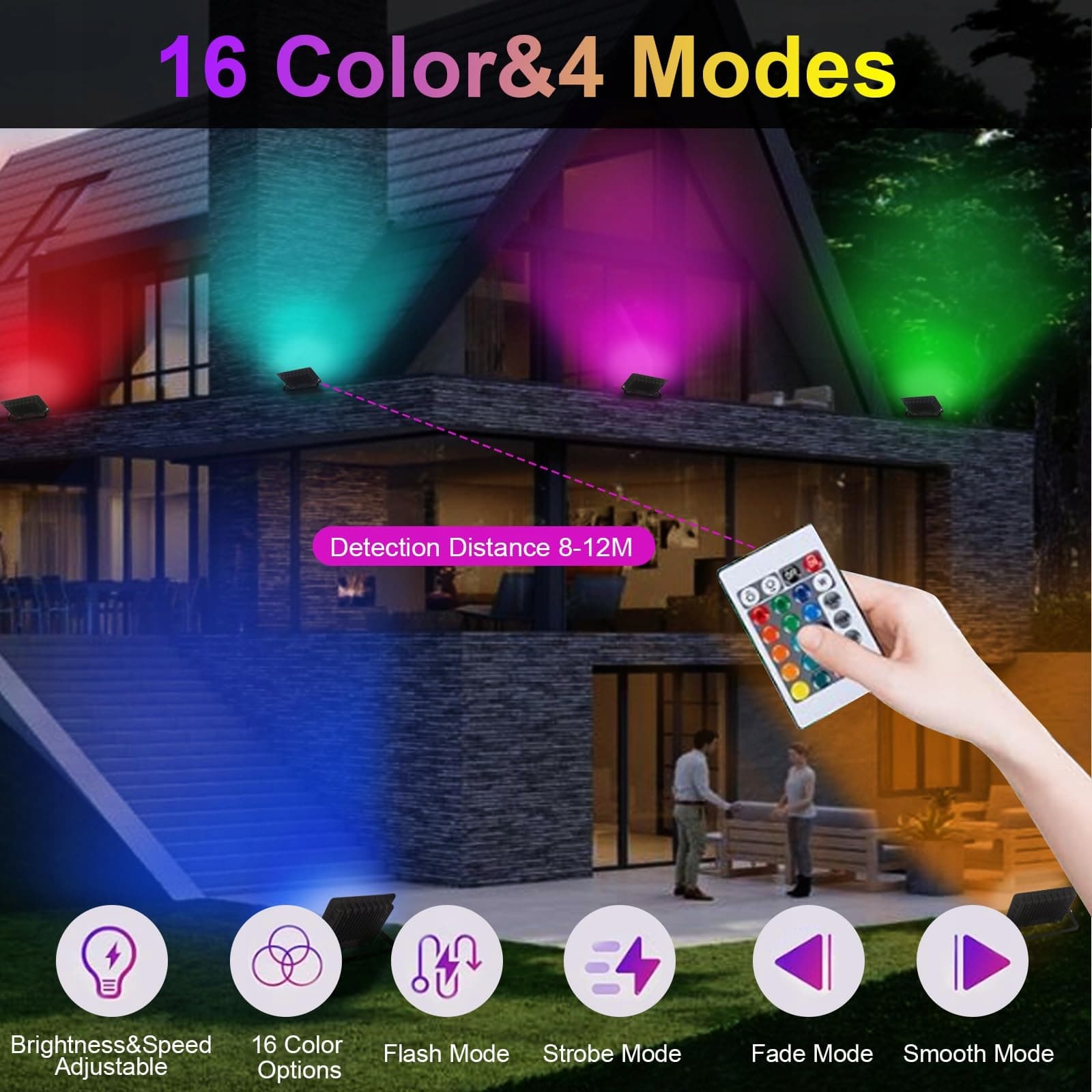 🌈【Duży obszar oświetlenia i 16 kolorów, 4 tryby】Kąt świecenia reflektora LED wynosi 120°, bez cieni i migotania, może oświetlać szeroki obszar. Możesz używać 16 różnych kolorów światła, aby spełnić swoje konkretne potrzeby oświetleniowe. Możesz także dostosować jasność zgodnie z wymaganiami. Oferuje 4 rodzaje wzorów zmiany kolorów, w tym błysk, migotanie, zanikanie i miękki.