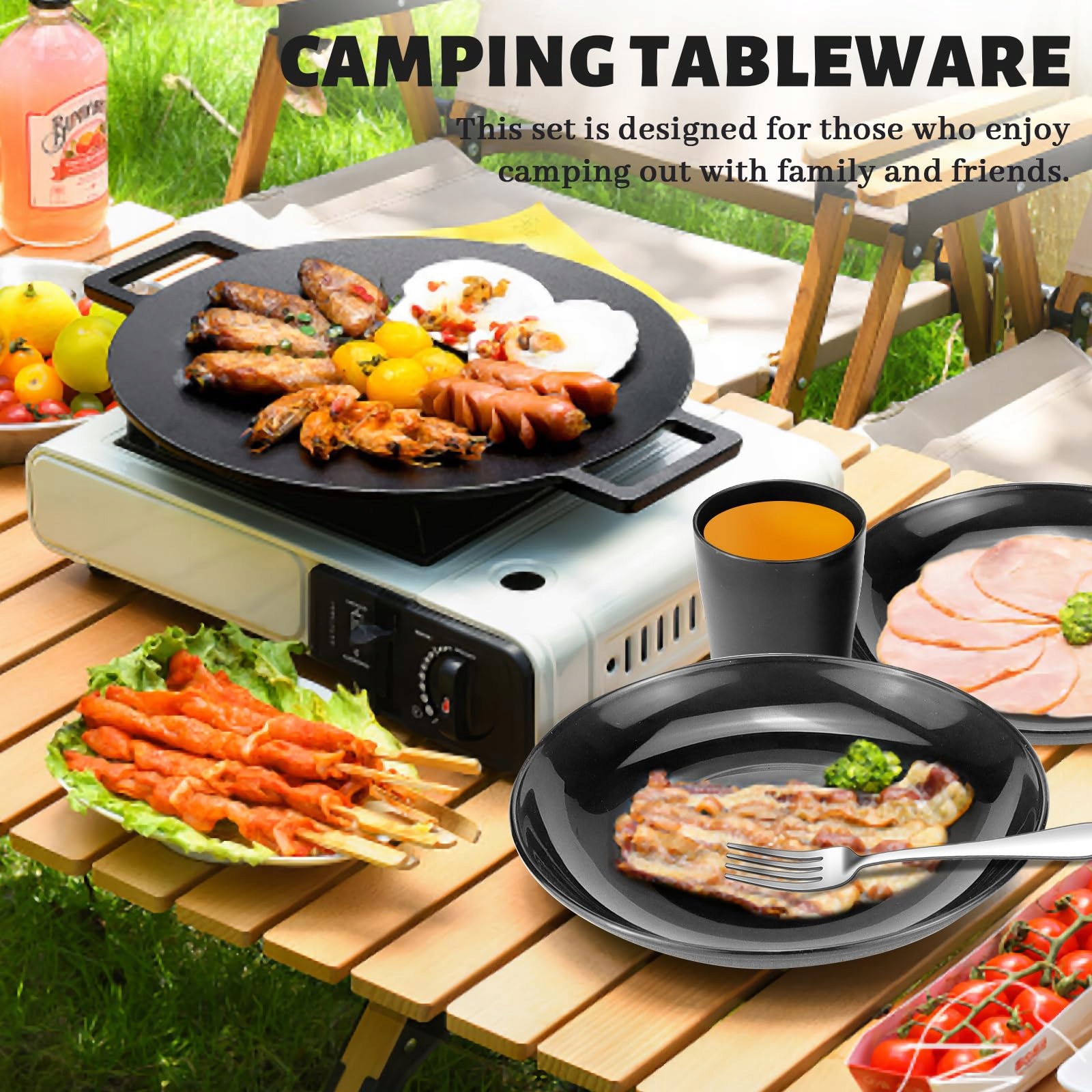 【Wysoka jakość】Talerze i kubki w tym zestawie kempingowym wykonane są z materiału PP, wolne od BPA, nietoksyczne i bezwonne. Są lekkie, niezniszczalne i wytrzymałe, a sztućce ze stali nierdzewnej wykonane są z wysokiej jakości stali nierdzewnej, są solidne i trwałe.