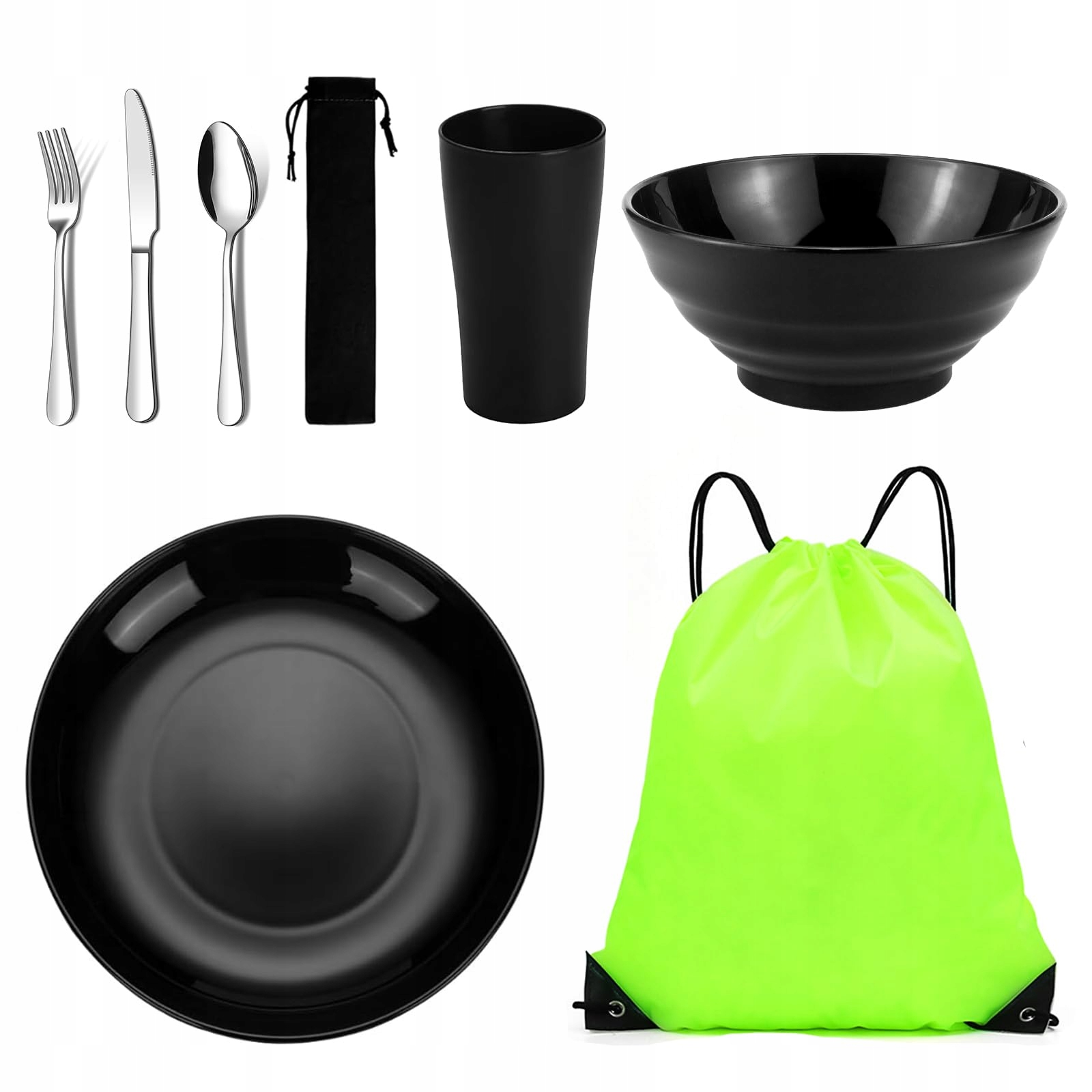 JEINBUIL Zestaw Naczyń Campingowych Lekki Zestaw Sztućców i Naczyń z Torbą | Premium Supply